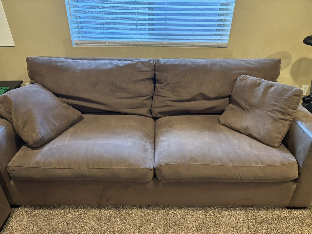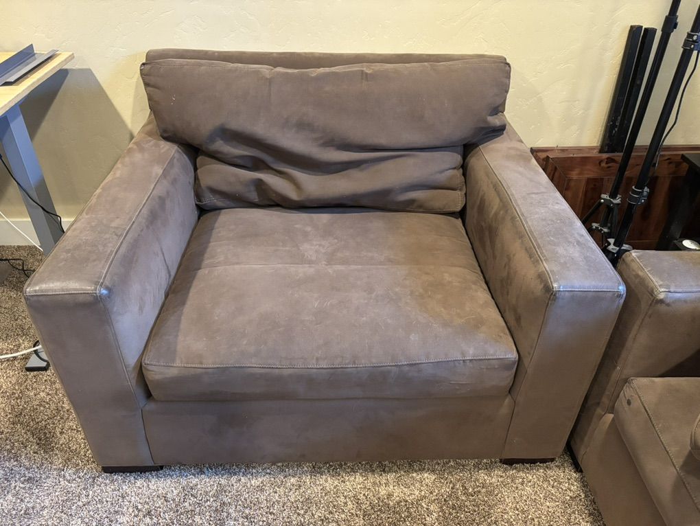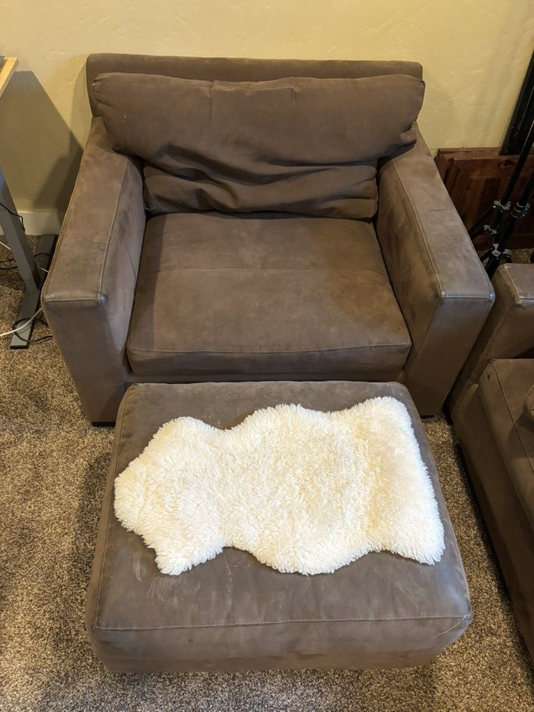ApplePaySuper comfortable and clean Crate and Barrel Axis sofa, wide arm chair, and ottoman set. Sofa is 86 inches wide and 42 deep. Arm chair is 46 inches wide and 42 deep. $600 for the set or $500 for sofa and $300 for loveseat and ottoman.
