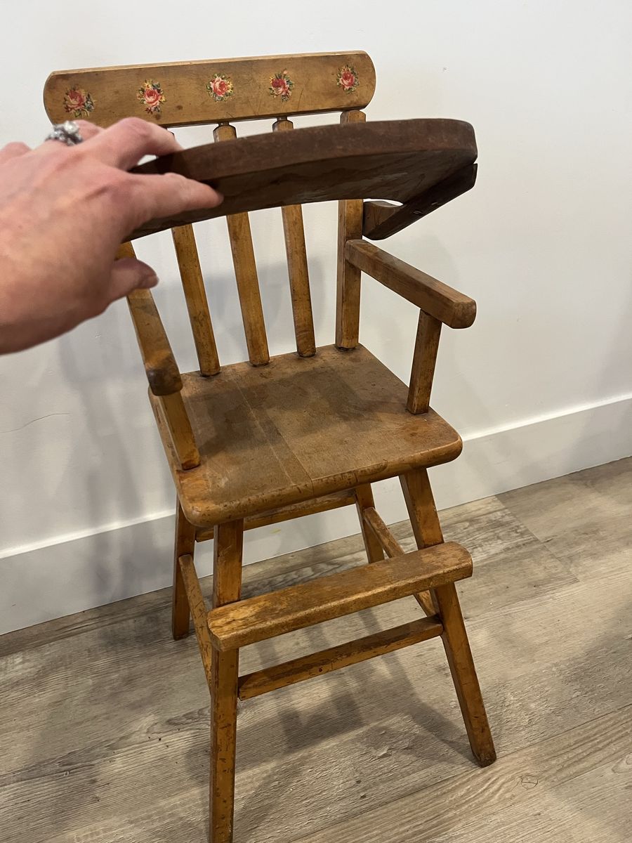 VenmoSuper cute vintage doll high chair. Beautiful floral pattern. Tray lifts up and down.