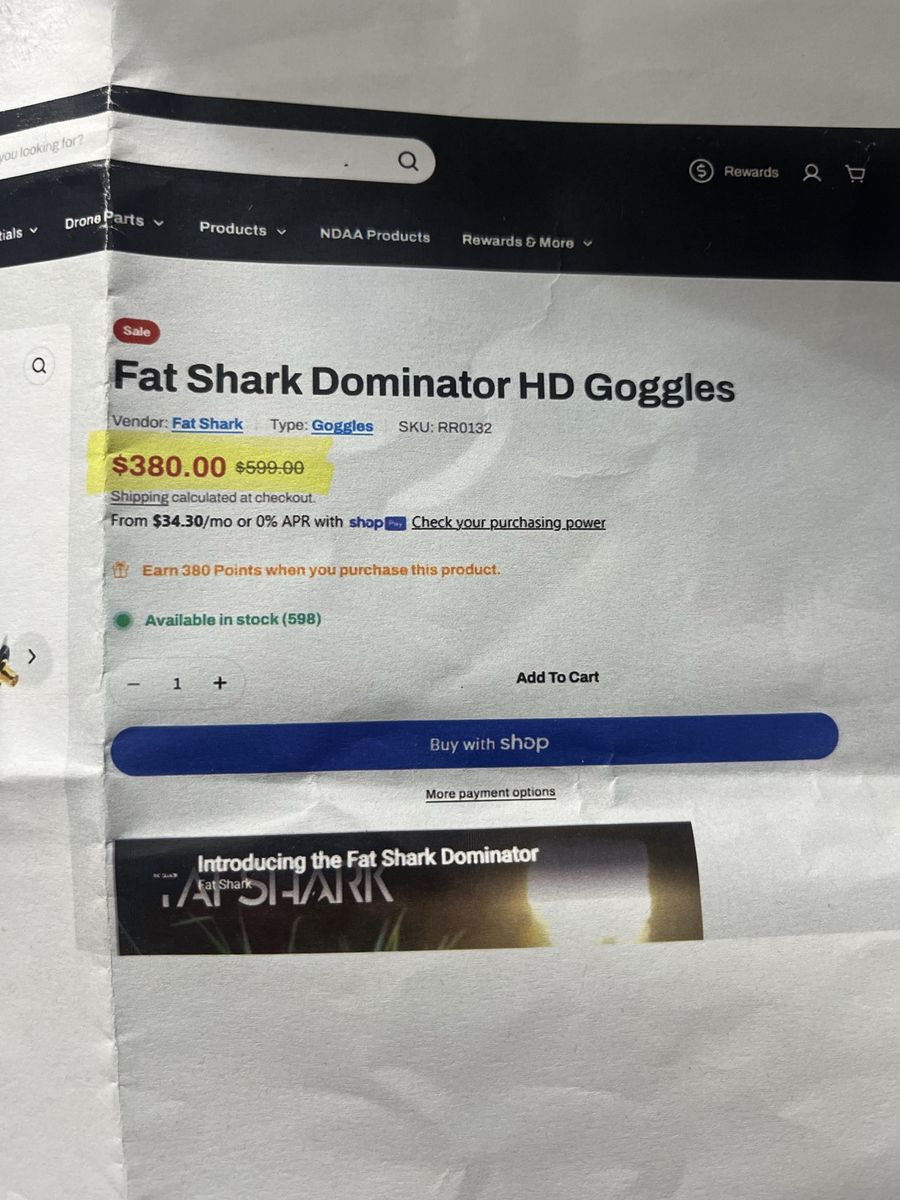 fat Shark dominator HD GOGGLES New ones go for around $380 or more, but I'll let these go for $325.