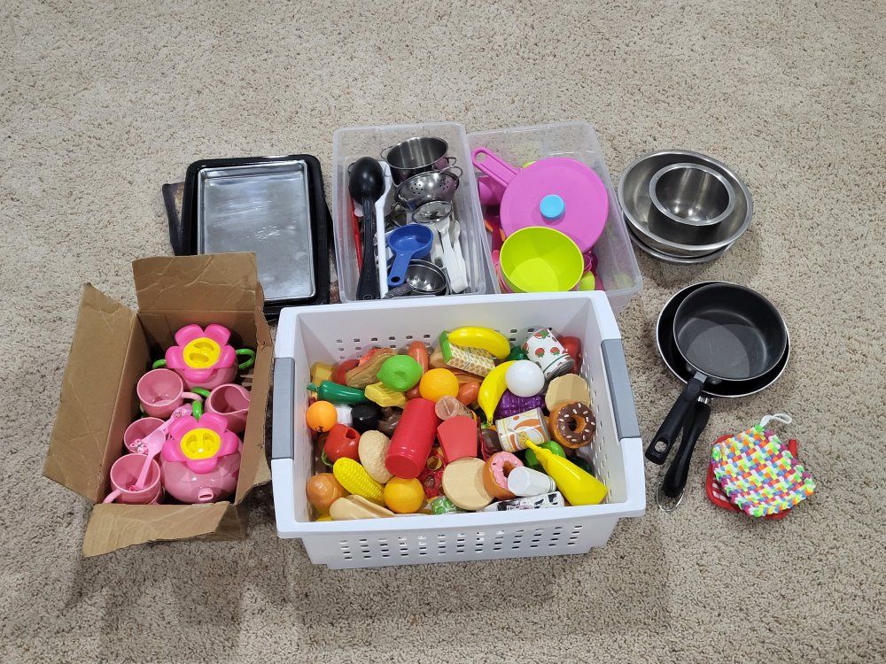 VenmoI made this play kitchen for my daughter when she was little, and now she's ready to pass it along for a new little kid to enjoy. I'm selling it for her at her request. About 25" tall, 35" wide and 17" deep. Includes pots, pans, bowls, play food, etc. Totes and basket not included though - she wants to keep those. This is well made, very sturdy, and one if a kind. All payment goes directly to my daughter, because this is hers. Located in Springville.