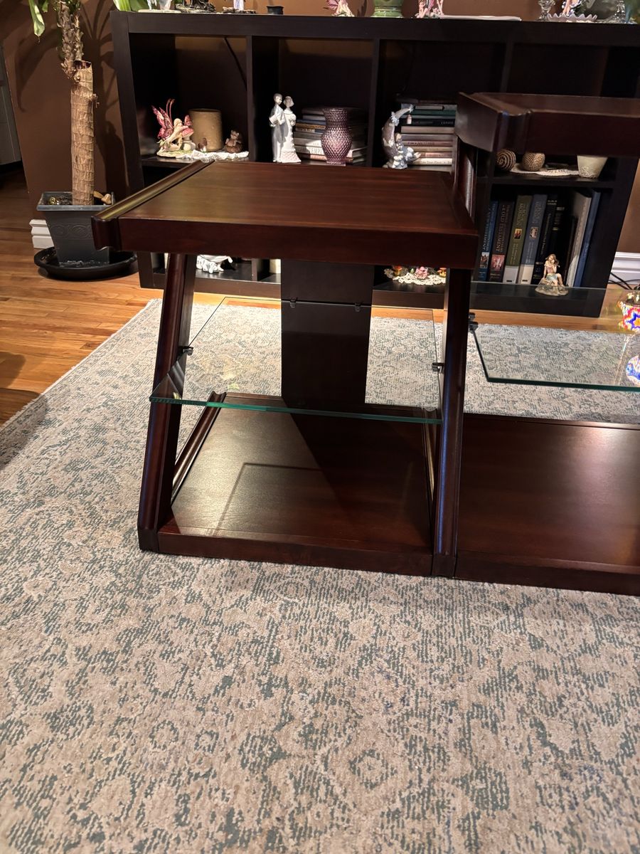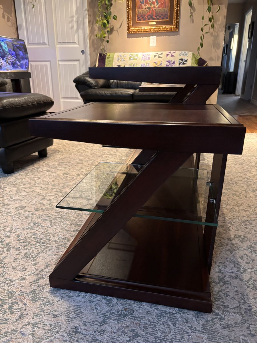 Upgrade your space with this beautiful, high-quality Royola Pacifica entertainment center. Solid wood with a rich cherry finish and a sleek Z-frame design—built to last and look amazing.