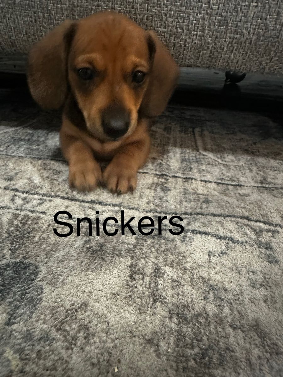 ApplePayHealthy, playful, and well-socialized minis. These little doxies have been raise around kids in a family environment. They were born on March 10 and will be available after May 5th. When they are ready to go home they will have all their deworming, vaccines, and checkups. All three puppies are males. Hershey is playful and energetic. Snickers loves to cuddle. Twix is lively and cuddly. Message me if you’d like more information or pictures.