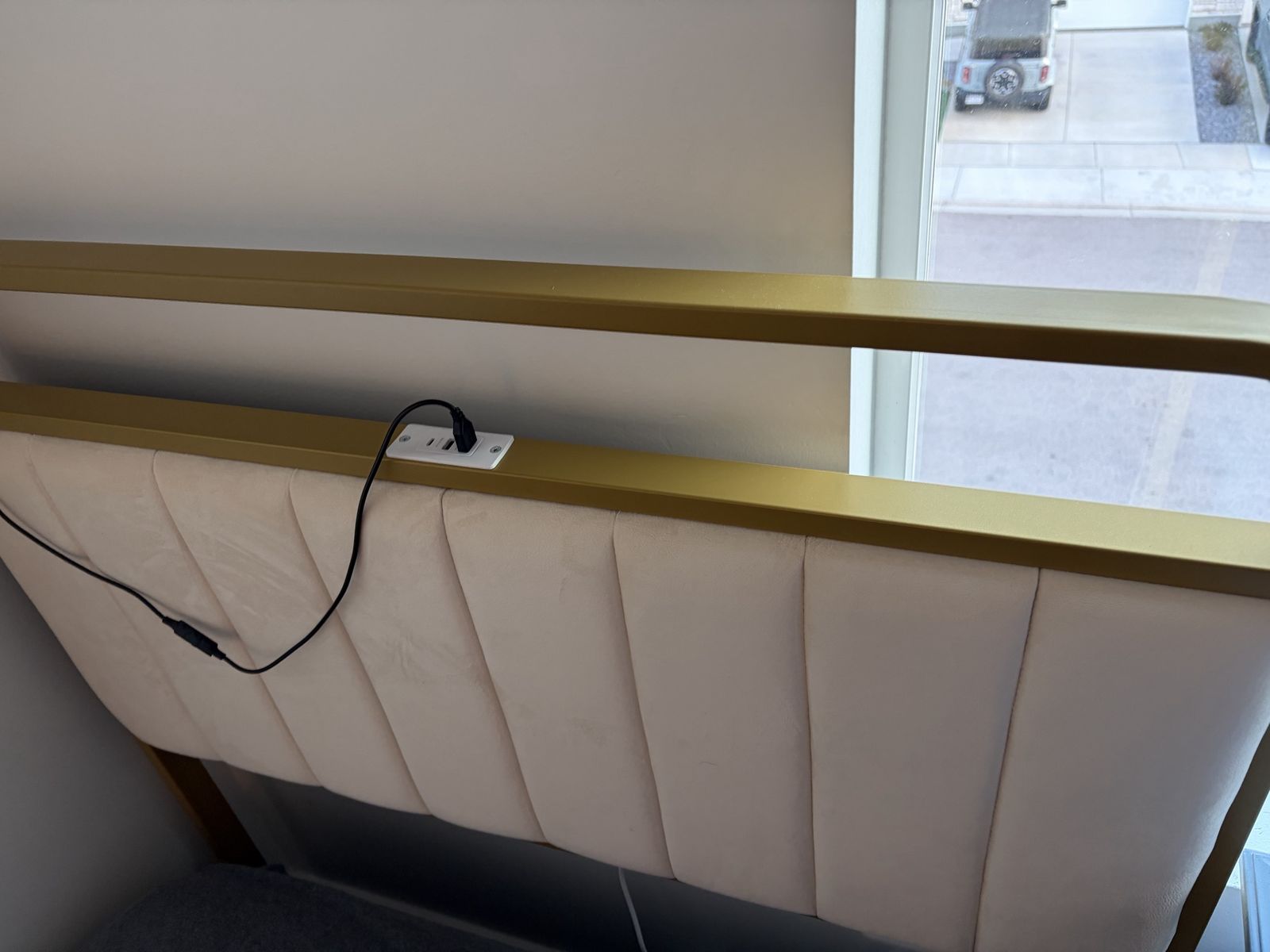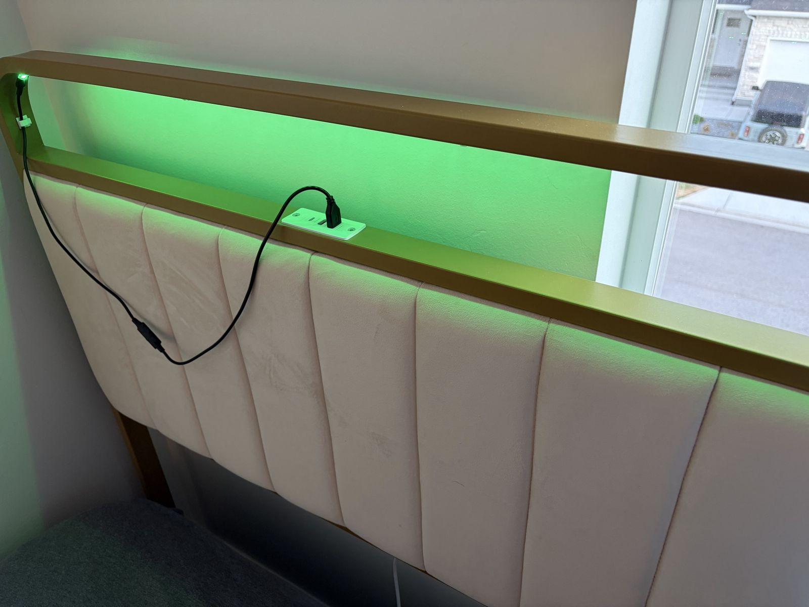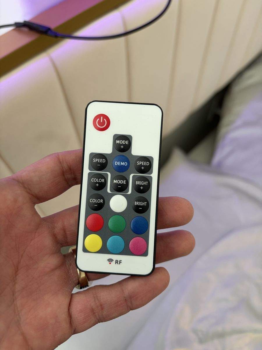 ApplePayMetal gold twin bed frame. Mattress included. Headboard and footboard cushioned. Headboard has functioning LED light glow with remote.