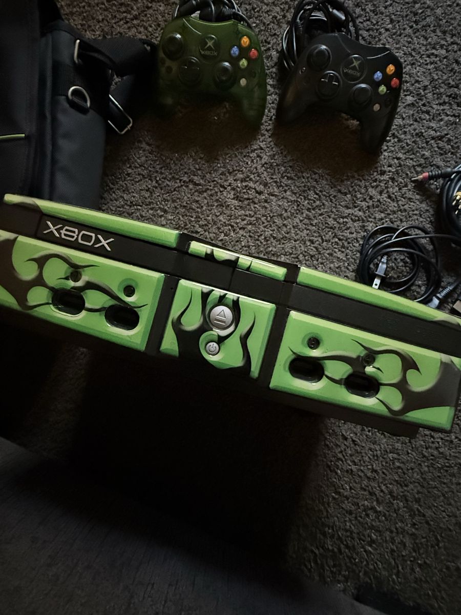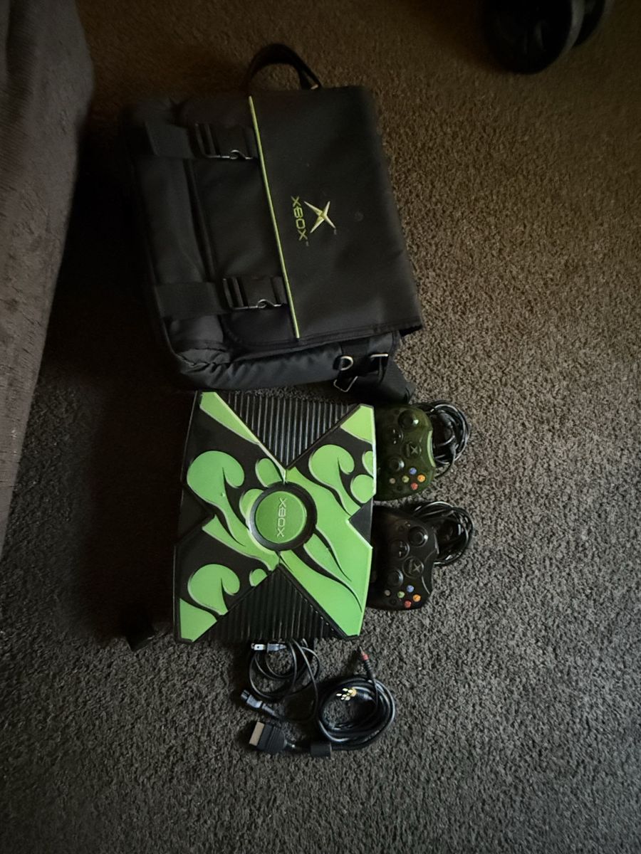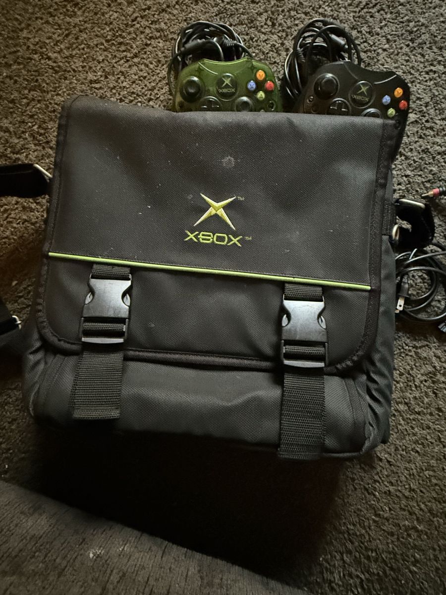 Xbox original with two controllers with travel bag included