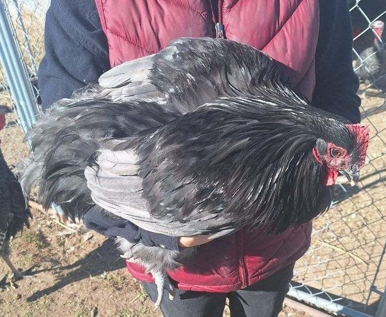Mature roosters will weigh about 15 pounds, making them a great meat bird. Other picture is me holding one of my 6 month old roosters from last spring.