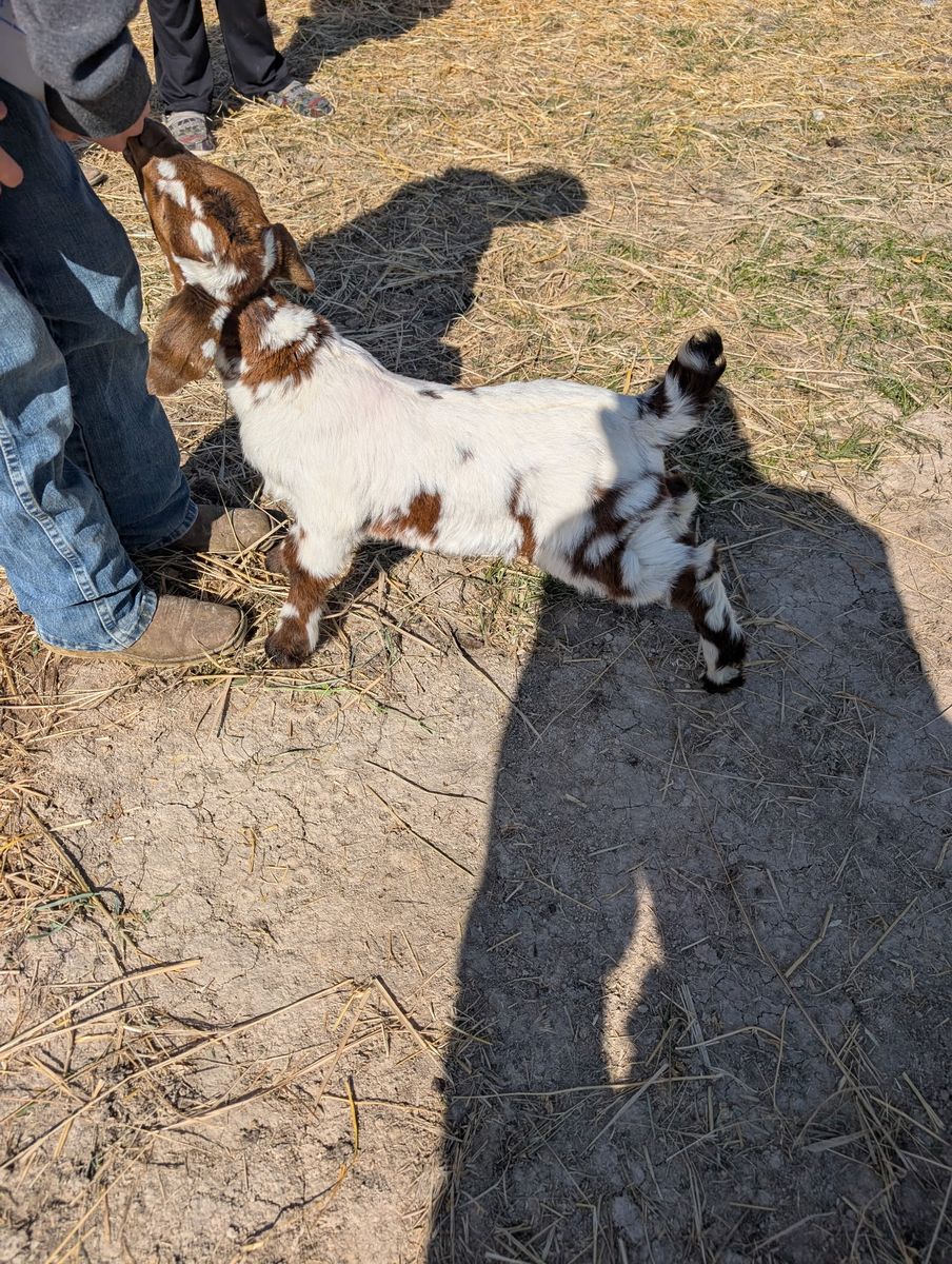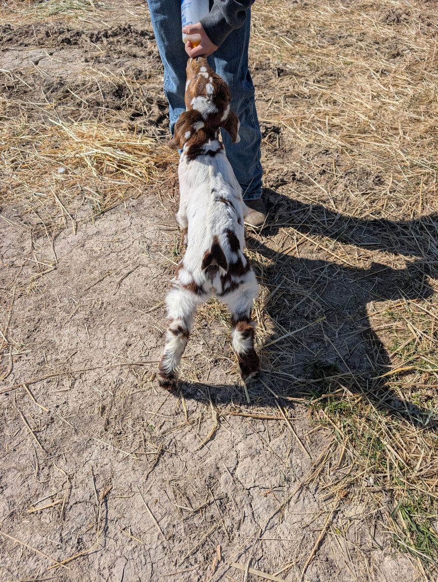 2 month old buckling. He comes from great breeding stock. He would make a great addition to any herd. Asking 350