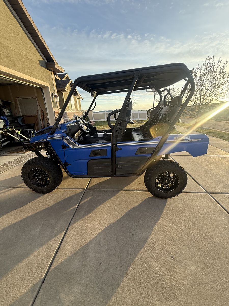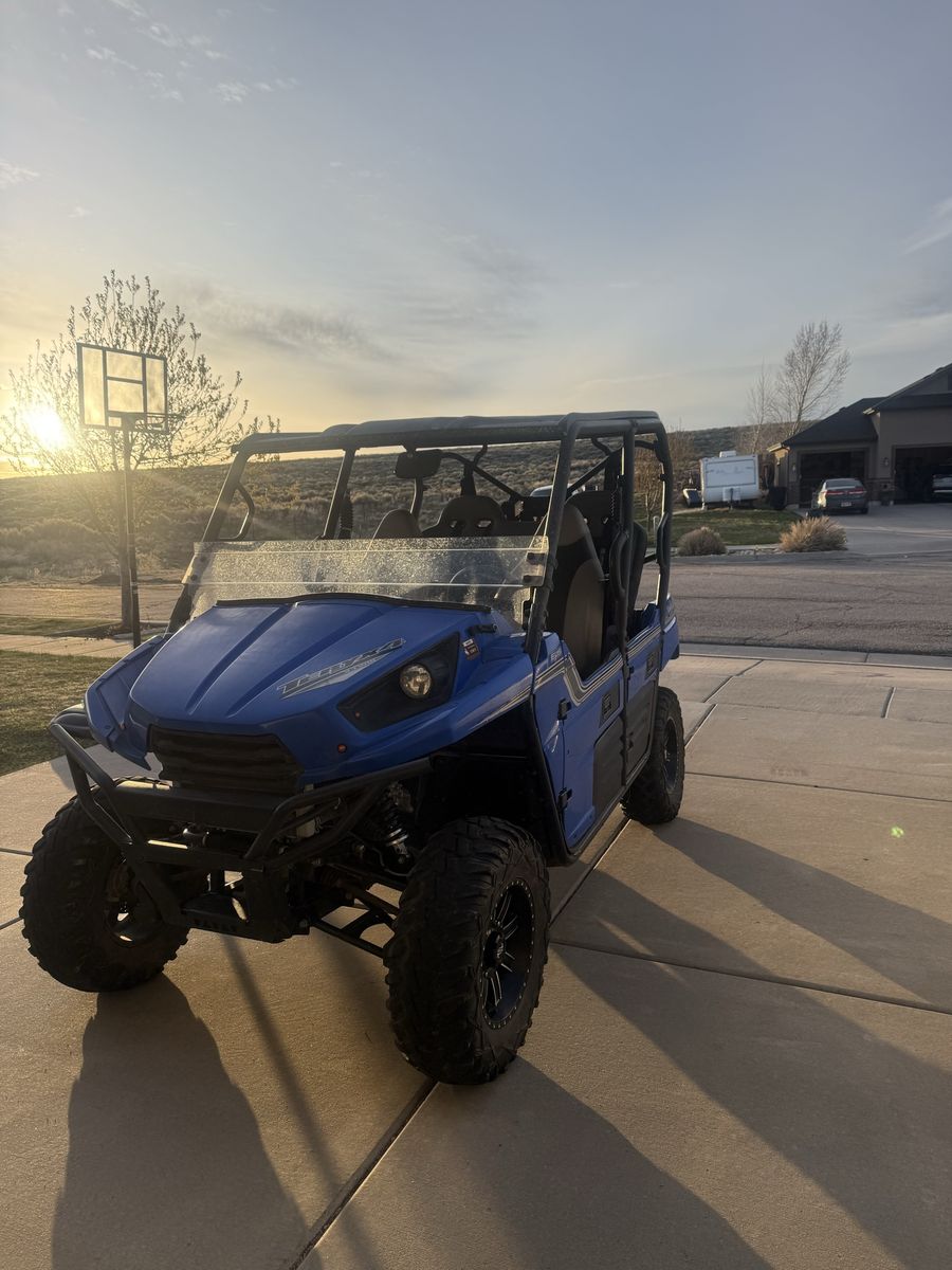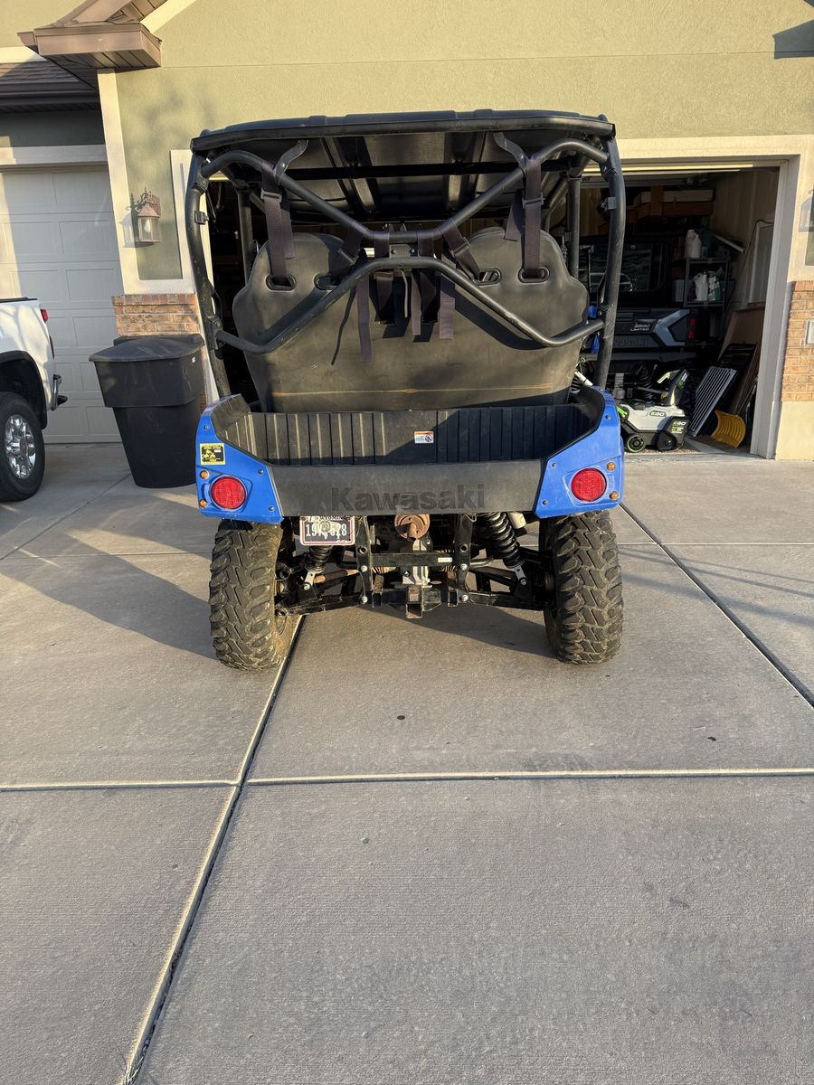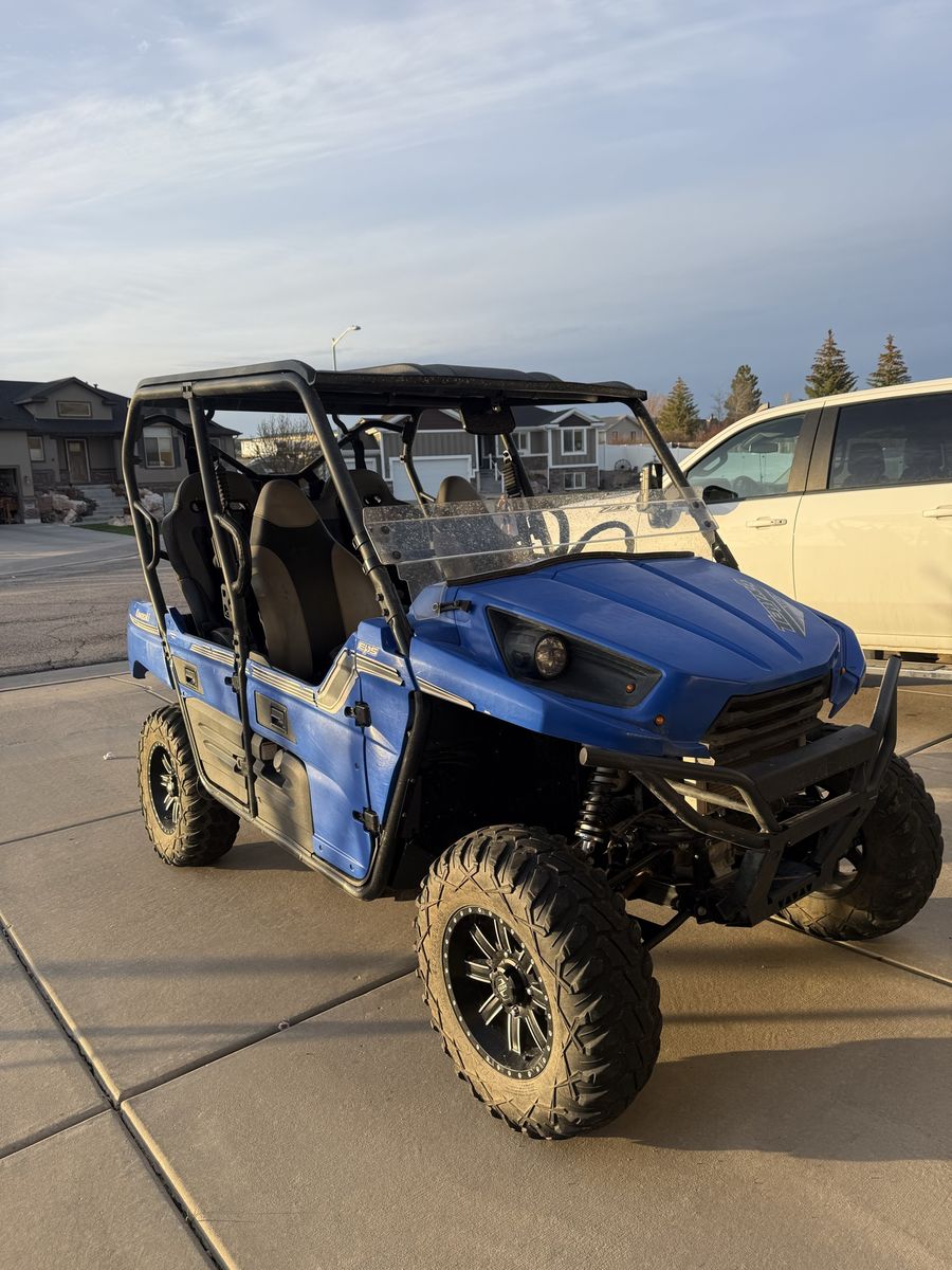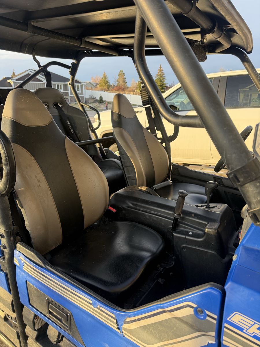 2012 Kawasaki Teryx4 750 EFI. Power steering. This has been a really good machine, it runs really well. It has a bench seat in the back to give you seats for 5. I also have to original bucket seats for the back, if that’s what you prefer. It has aftermarket rims with 28” wheels. It also has turn signals and a horn. It has just under 4,000 miles. I replaced the belt last year.