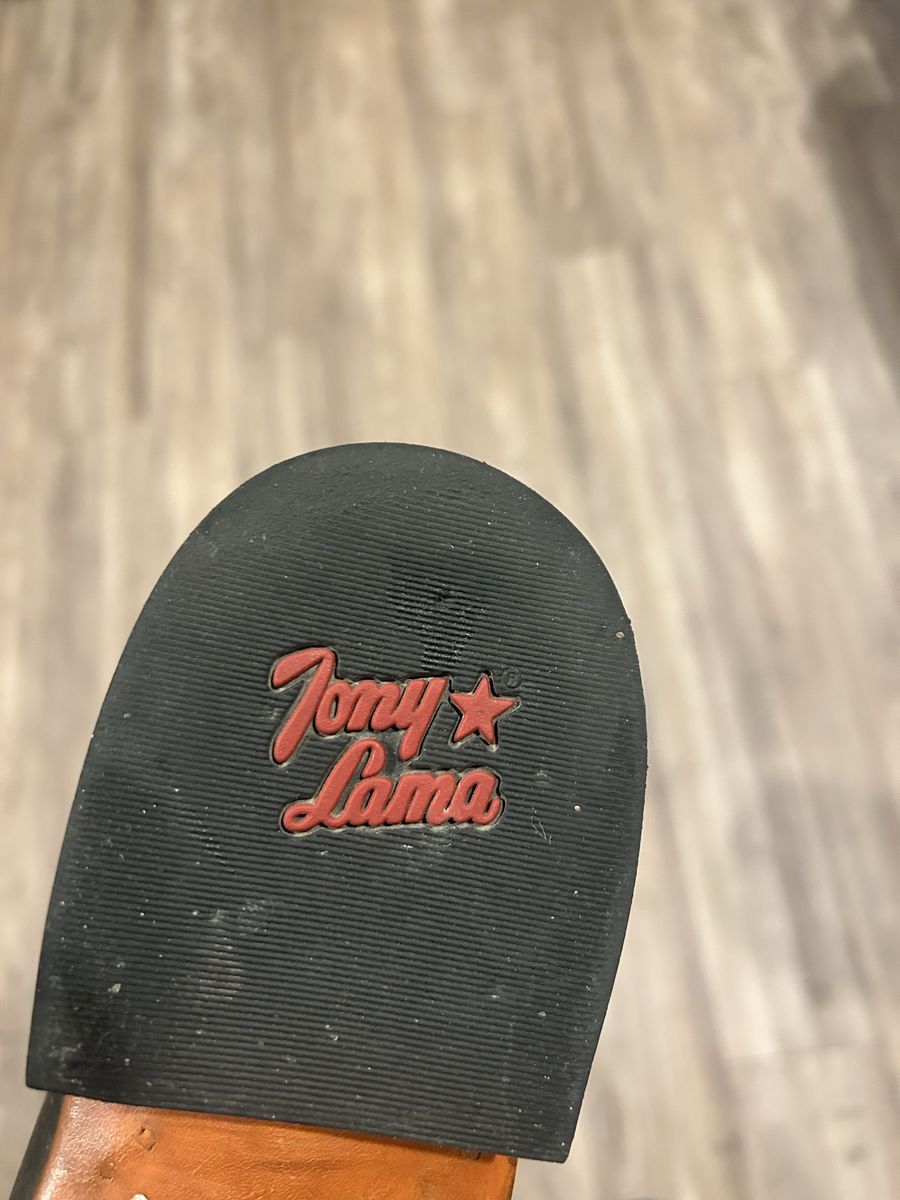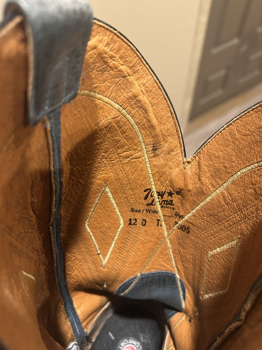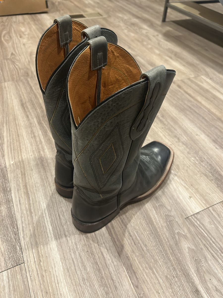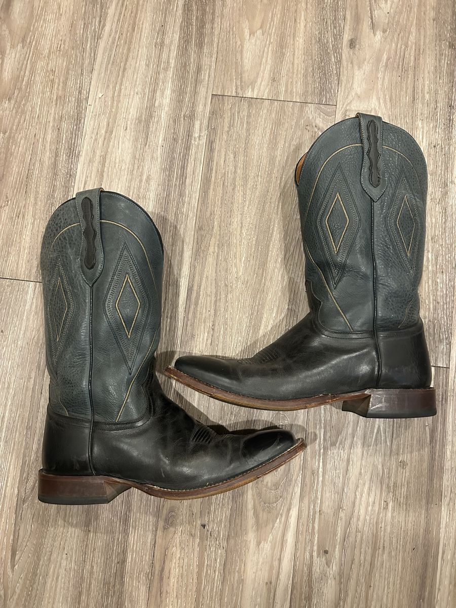 VenmoSquare toe, very nice condition. They have a dark blue upper and black lower.