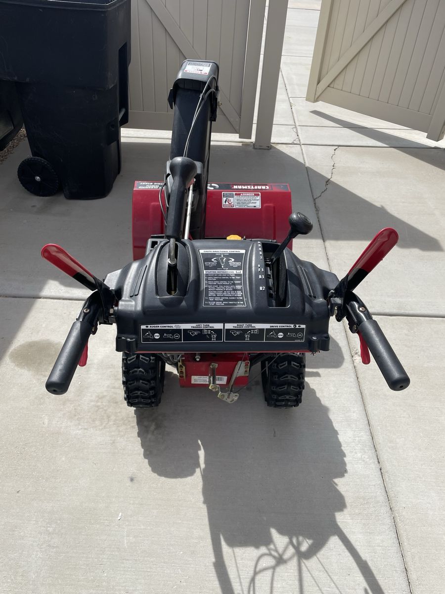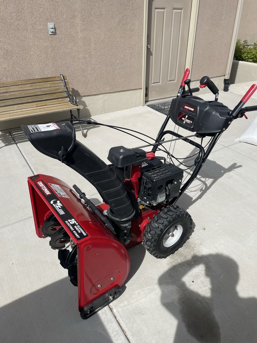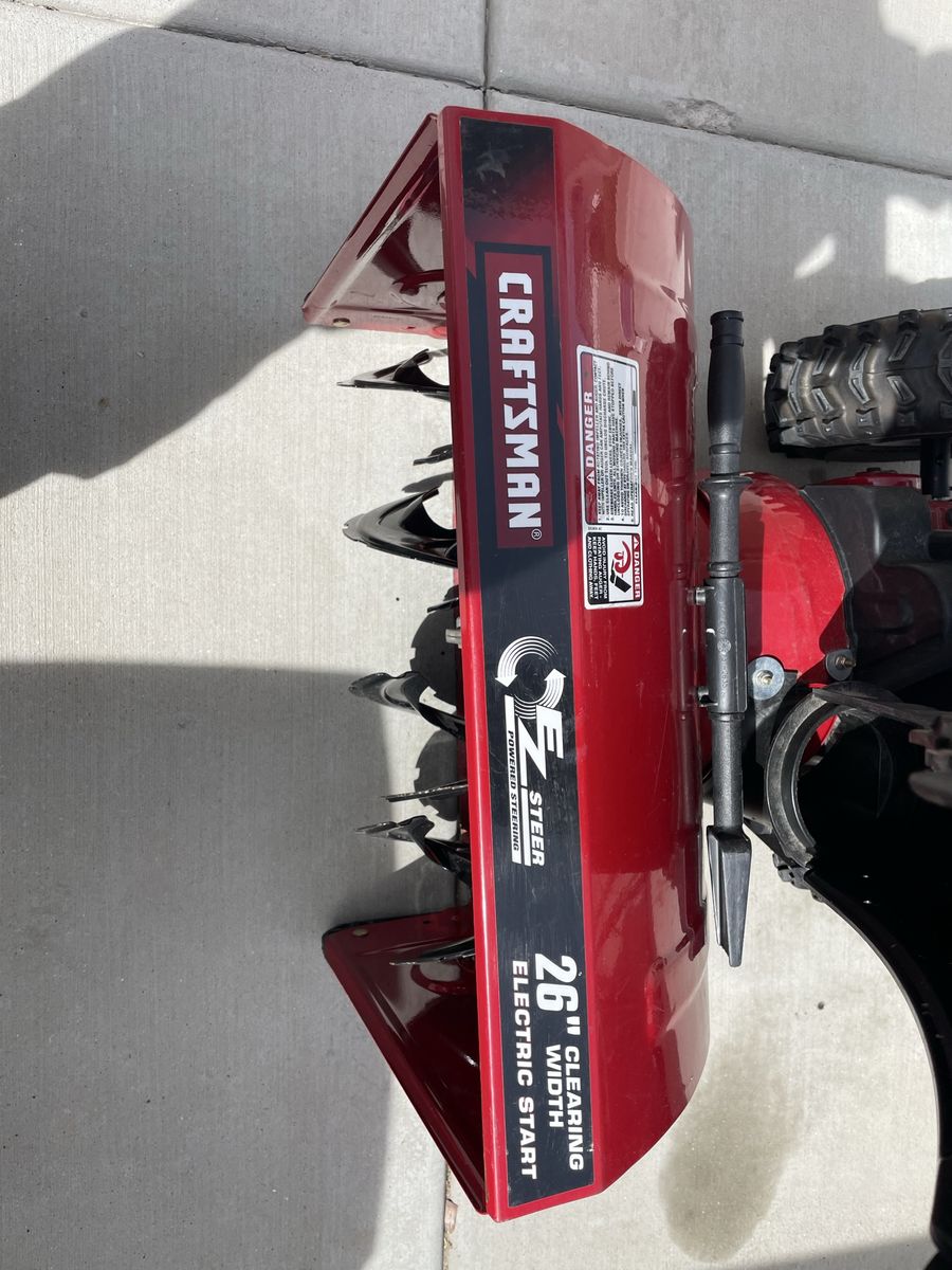 208 cc motor 26” cleaning shoot 2 stage easy steering. Rubber tires 6 forward 2 reverse speeds Electric start & Pull start Working perfectly