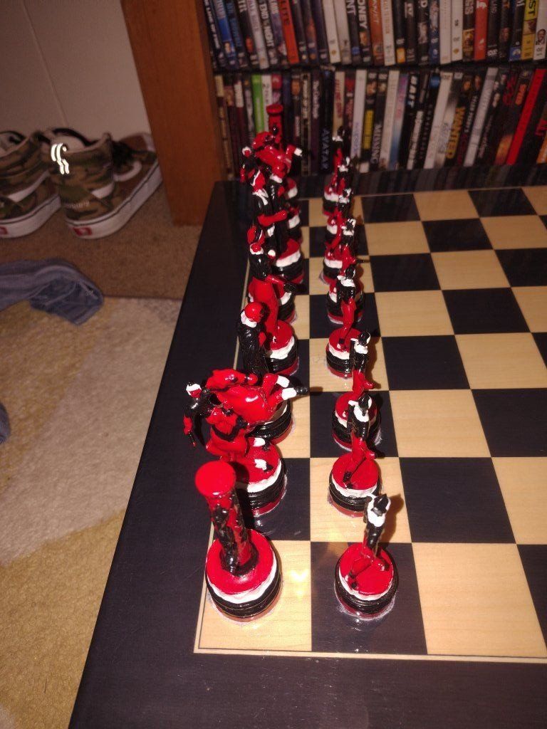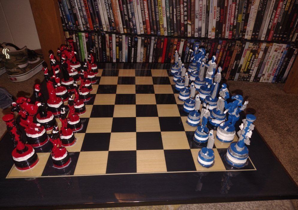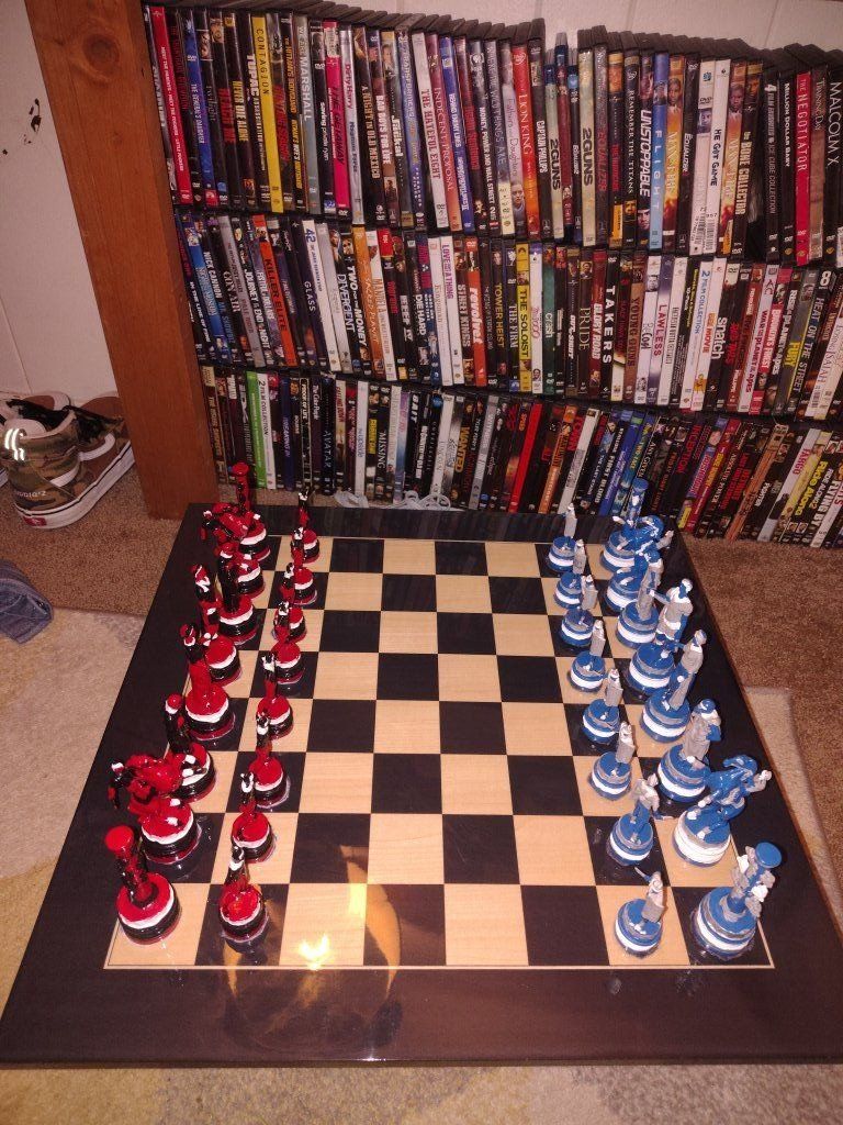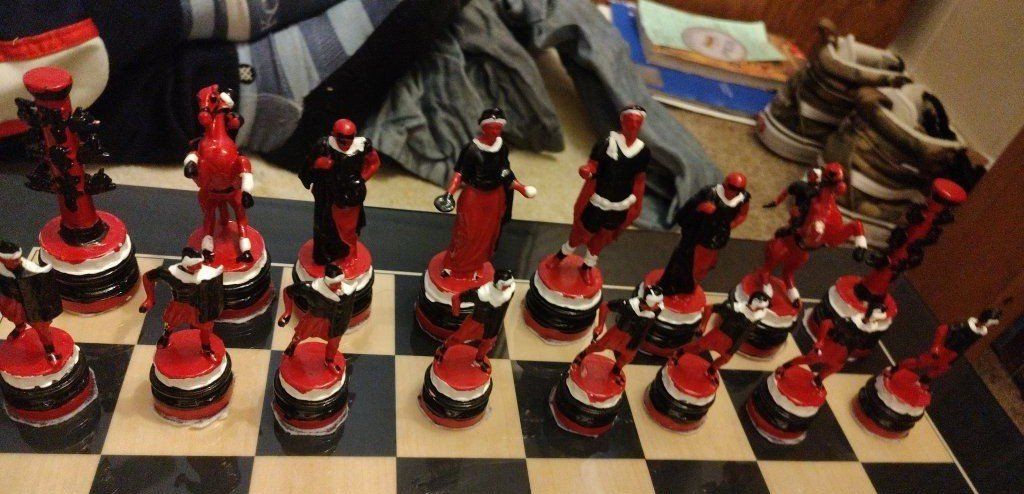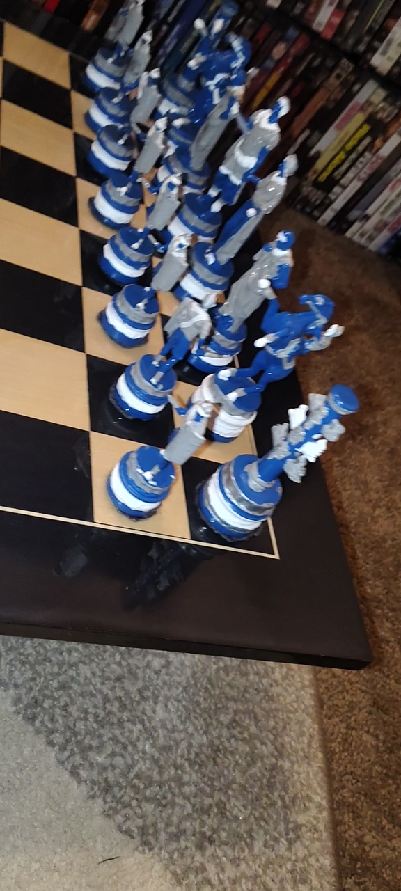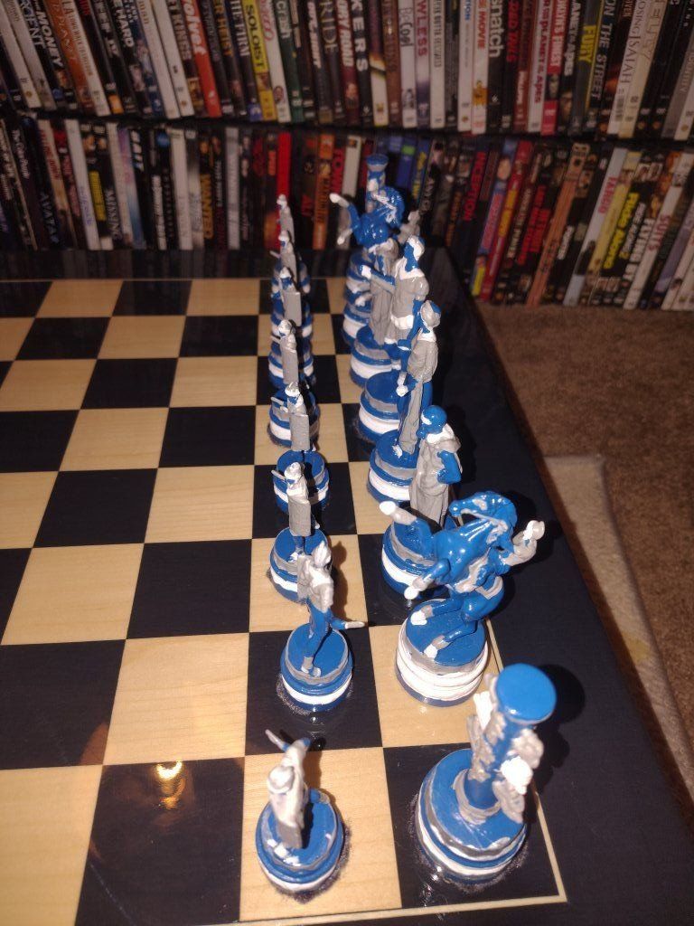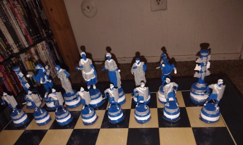 GooglePayhand painted custom chess set 24"x24" Spain handmade board ... Ancient Roman Chess Pieces real wood board midnight blue.. full set board n pieces $400