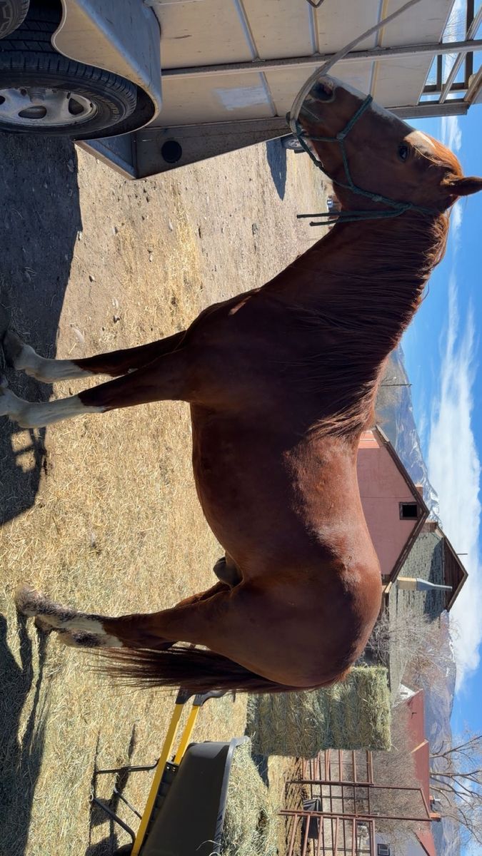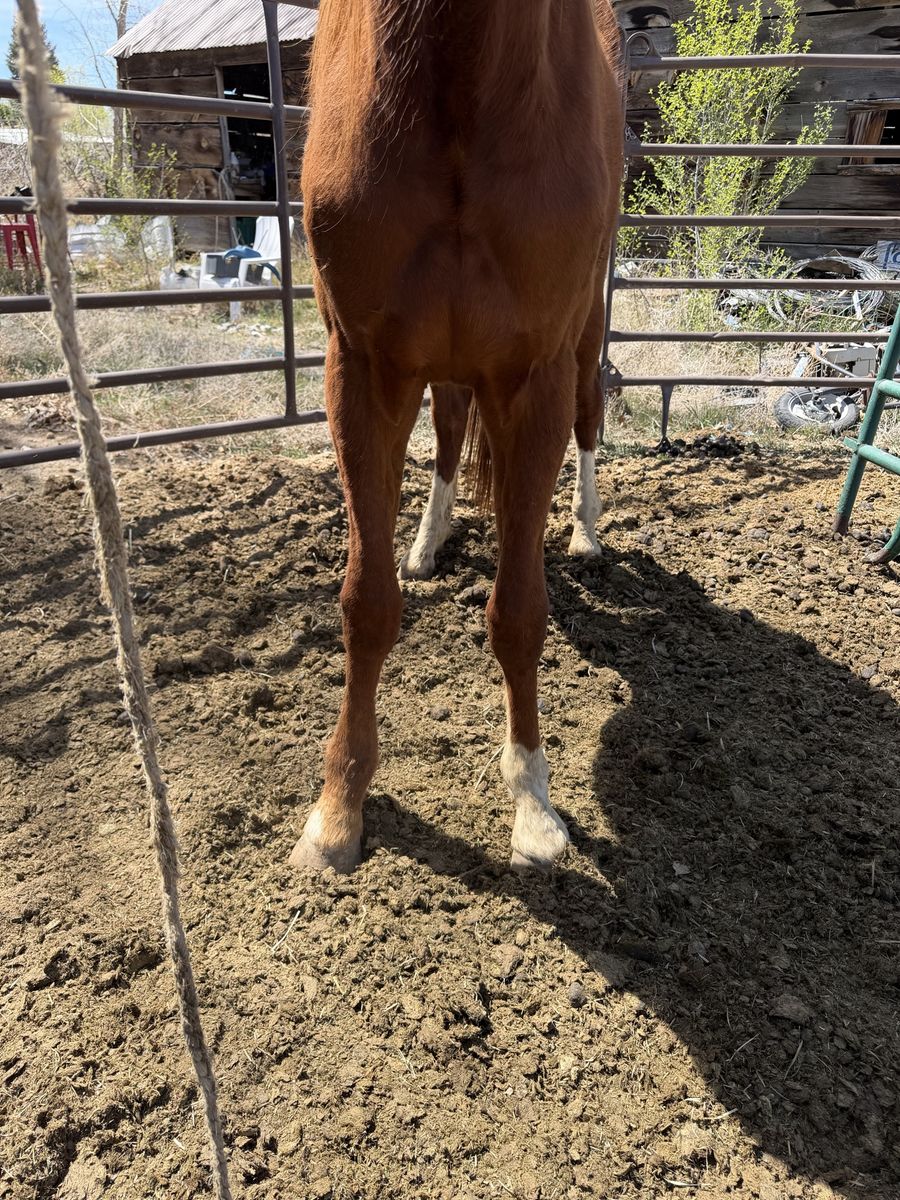 I’ve got this coming two year old colt up for discussion! Big long straight legs and a looker! Stands about 14.3 hands right now! He is grade! Started training him to lead and he’s coming along nice! He’s been turned out his whole life so he hasn’t had a lot of human contact! I do own his half brother ( dark sorrel horse pictured) and he’s big a stout and wants to be fancy! Easily a barrel or rope horse prospect! Give me a call if you have any questions! $1800 obo See Less