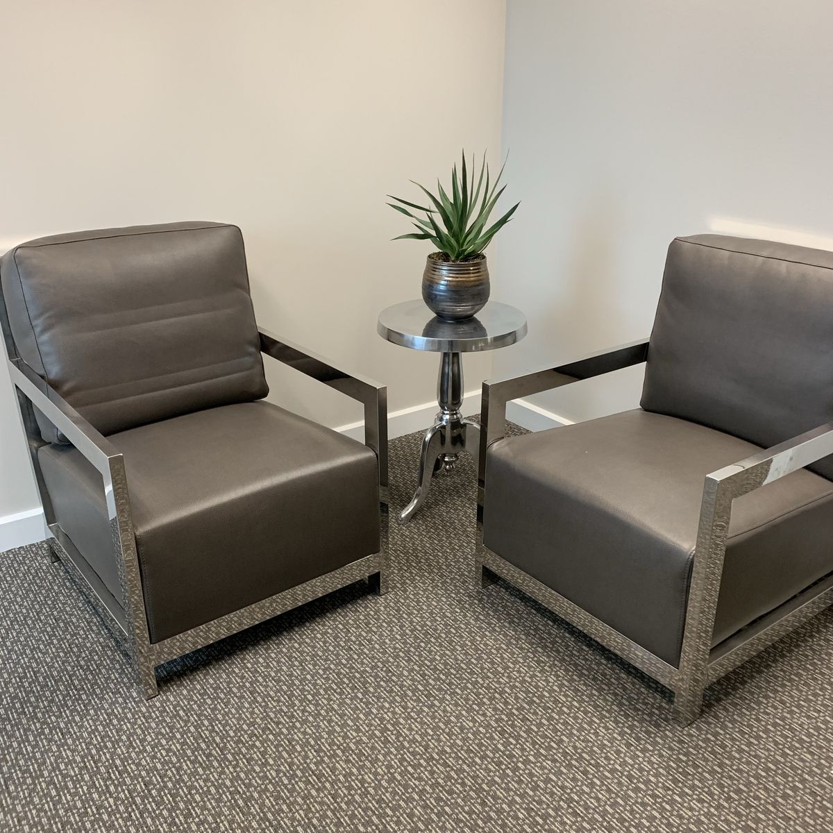 ZelleSet of 2 Z Gallerie chairs in gray leather with metal frames. Clean, modern design and in excellent condition. Used in a quiet office so they’ve seen very little wear. $350 for the pair.