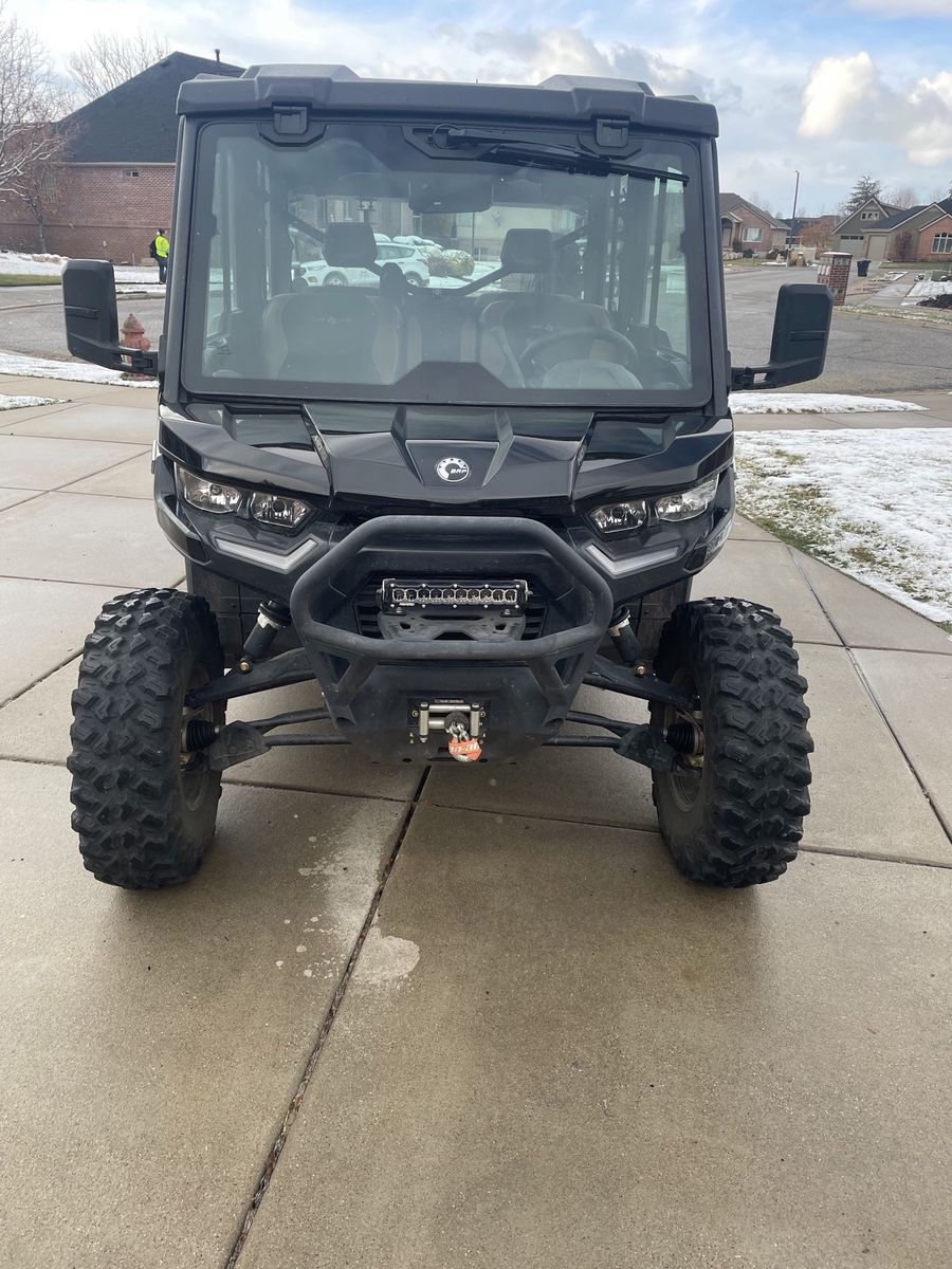 Like new 2023 can am defender lonestar. Low miles with tons of extras. Street leagal kit with accent lights, blickers, horn and can am side mirrors can am backup camera/mirror Heretic light bar RBO rack RBO shovel mount RBO rotopax mount RBO spare tire rack Spare tire Dome Light speed limiter bypass JL audio roof with 6 led speakers and amp full skid plate with rock sliders high clearance A-arms net pockets behind both front seats front glove box net LED headlights 30 inch tires 4500lbs winch under seat Gun rack under seat storage under seat cooler 2 inch receiver hitch All maintenance up to date. Runs great with no issues. Just upgrading to a new machine.