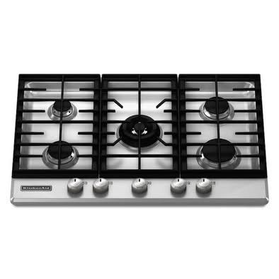 VenmoKitchenAid 30-inch stainless steel gas cooktop with 5 burners, including a powerful center burner for high-heat cooking. Heavy-duty cast iron grates and sleek stainless finish make it both durable and stylish for any kitchen.