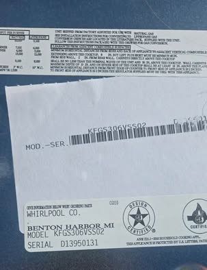 Model: KFGS306VSS02 Brand: KitchenAid (Whirlpool)