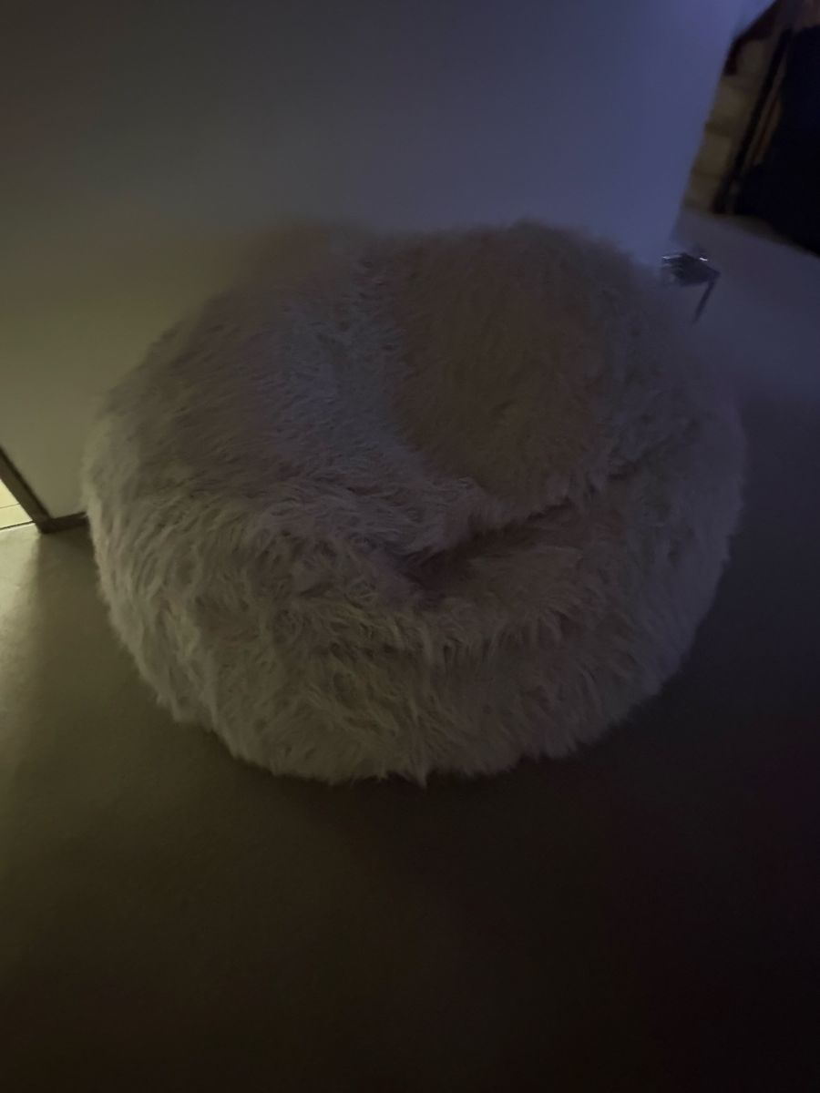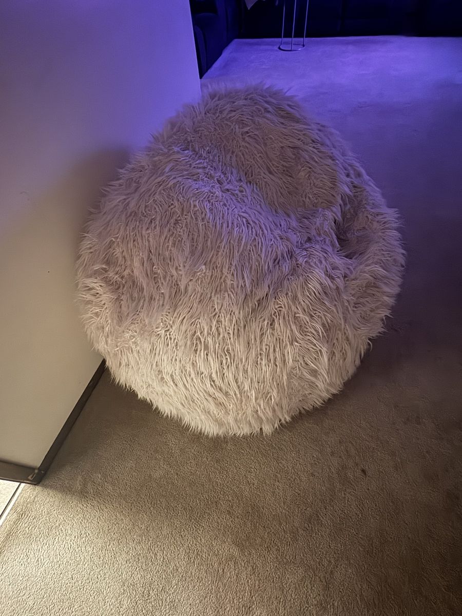 CashAppFluffy bean bag chair has soft white faux fur material. This oversized seat is filled with foam or beans and provides a cozy texture for any room. Bearly even used moving that’s why it’s listed for so cheap. SHOOT ME OFFERS.