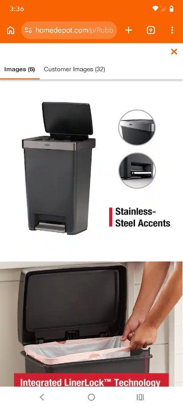 PayPal*Charcoal stainless-steel rim and pedal upgrade the aesthetics of the container to complement your space