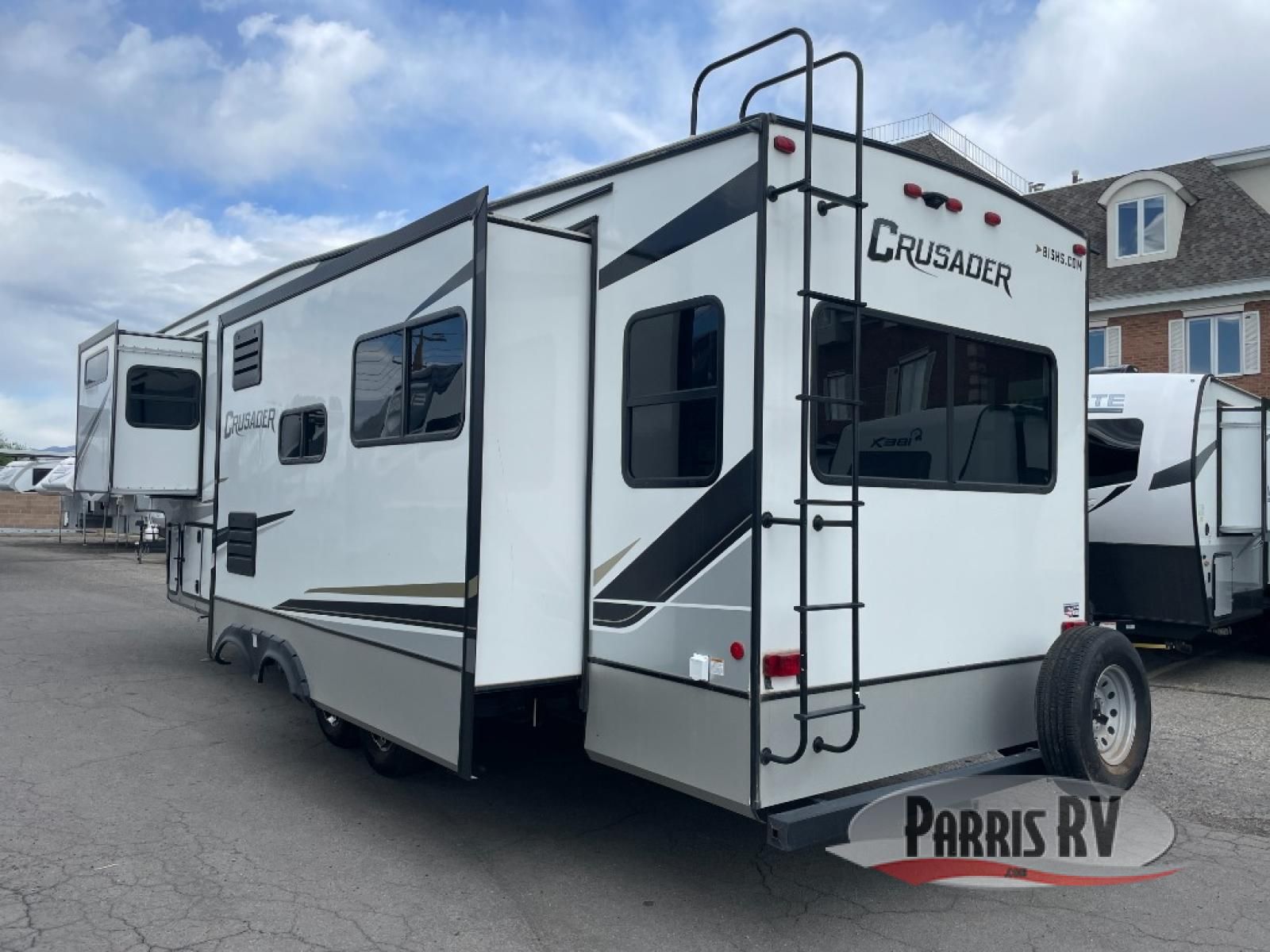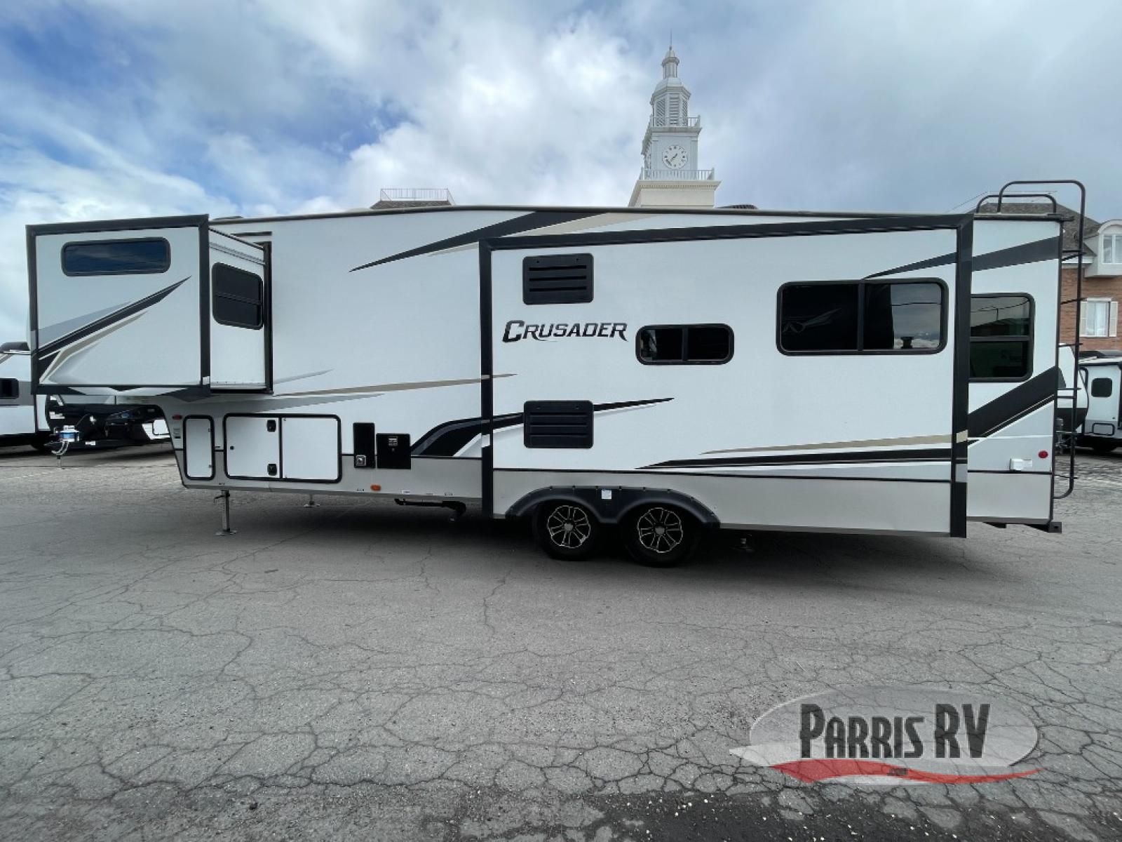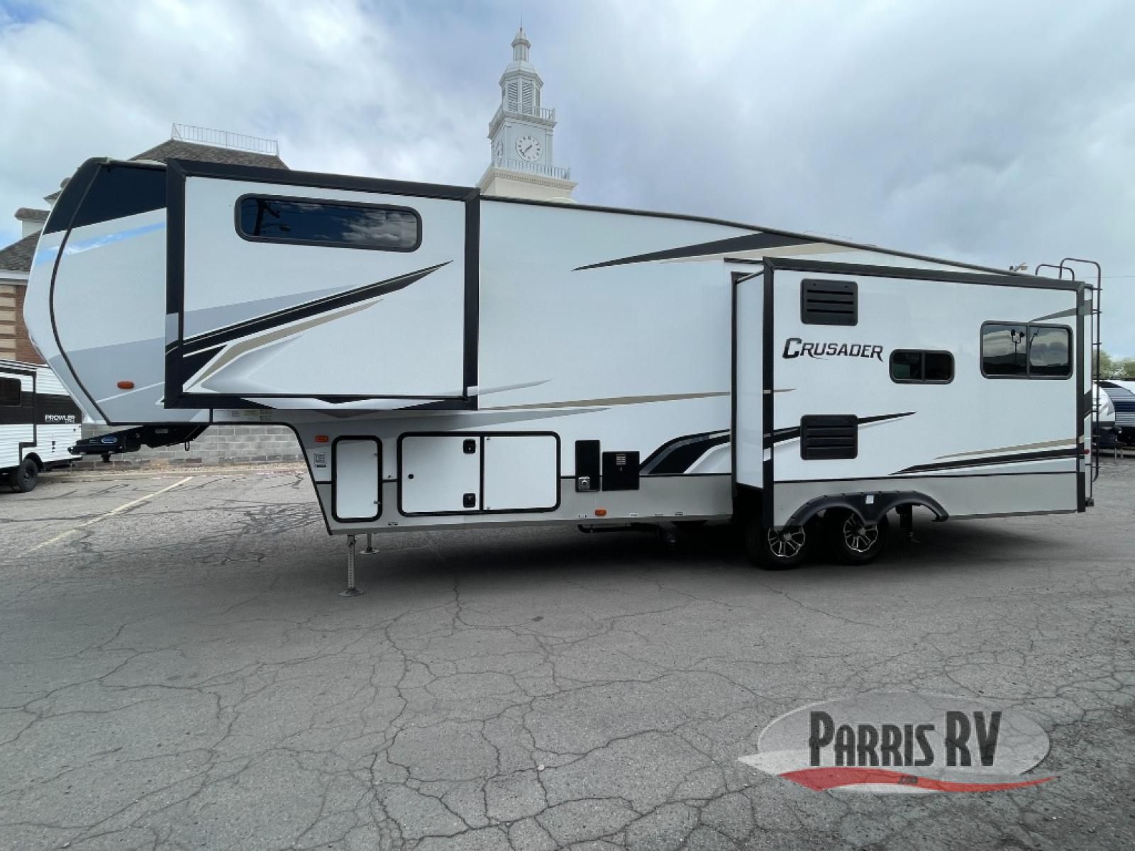 The Crusader fifth wheels by Prime Time RV are a step above the rest and it's not hard to see why. Each model has been constructed to last with its exclusive Eternabond construction, a one-piece TPO roof, and high gloss gel coat fiberglass exterior. The auto leveling system and the central docking center will have you set up to camp in no-time, and there is a convenient bottle opener and Doggy D-ring for your furry companions. You will fall in love with the interior that includes solid surface countertops, premium vinyl flooring, hardwood cabinet doors, and many more residential comforts. The Crusader also comes standard with a 15,000 BTU "Quiet Cool" A/C, a 35,000 BTU high capacity gas furnace, and the Extreme Thermal Package Plus, making your camping season year-around!