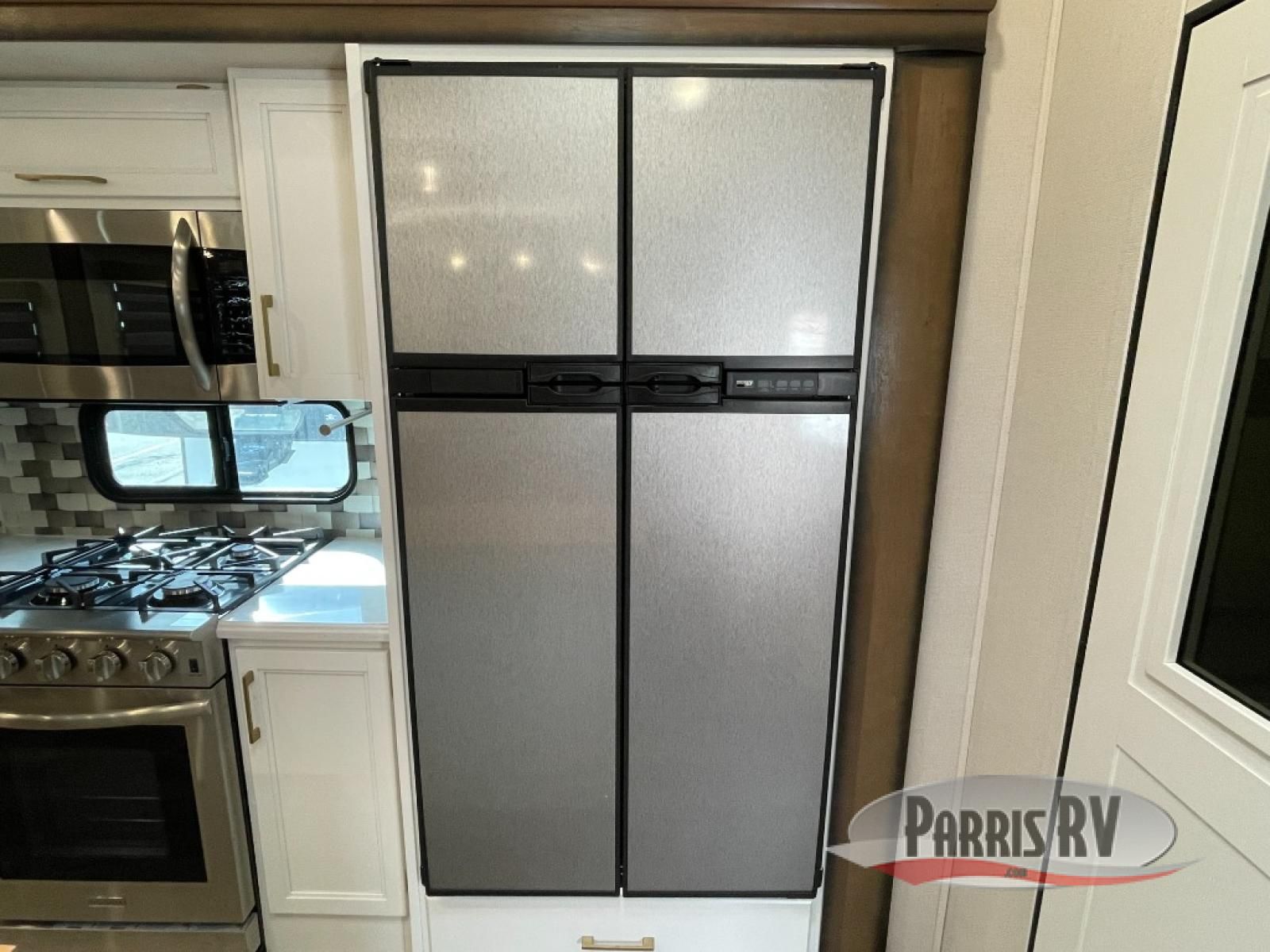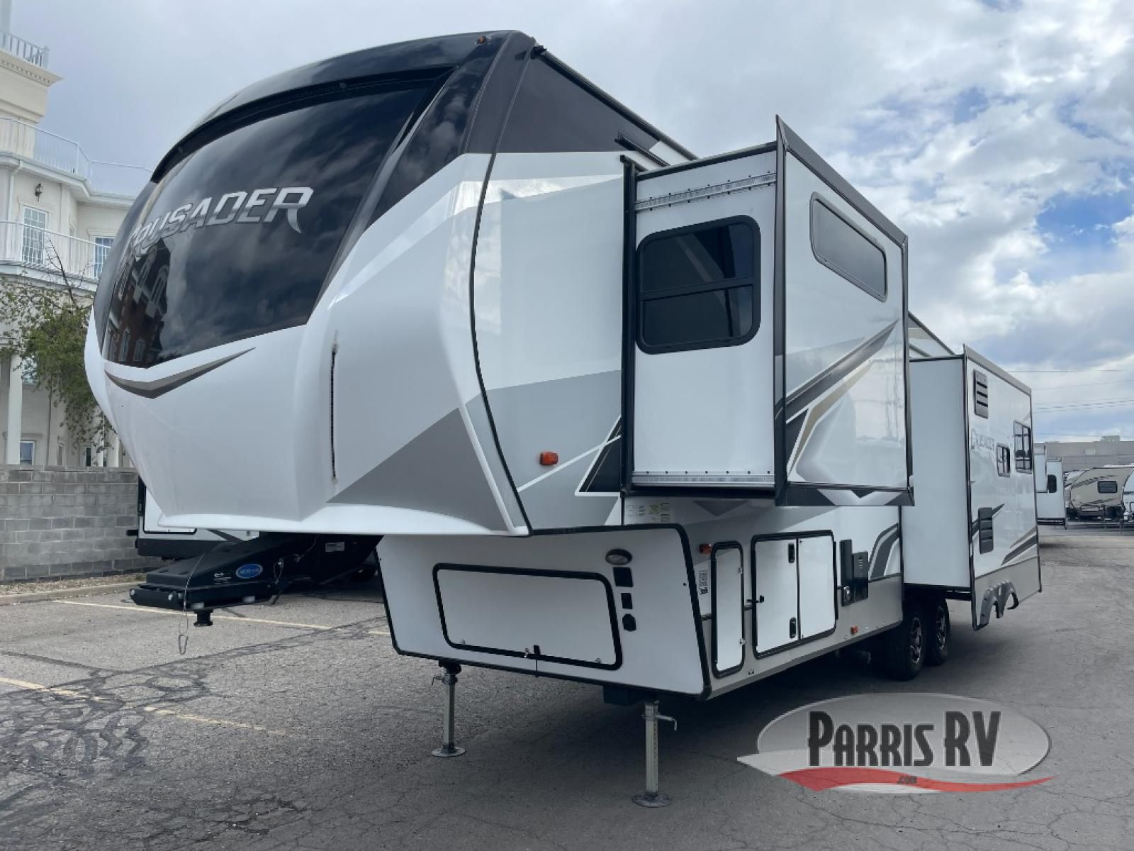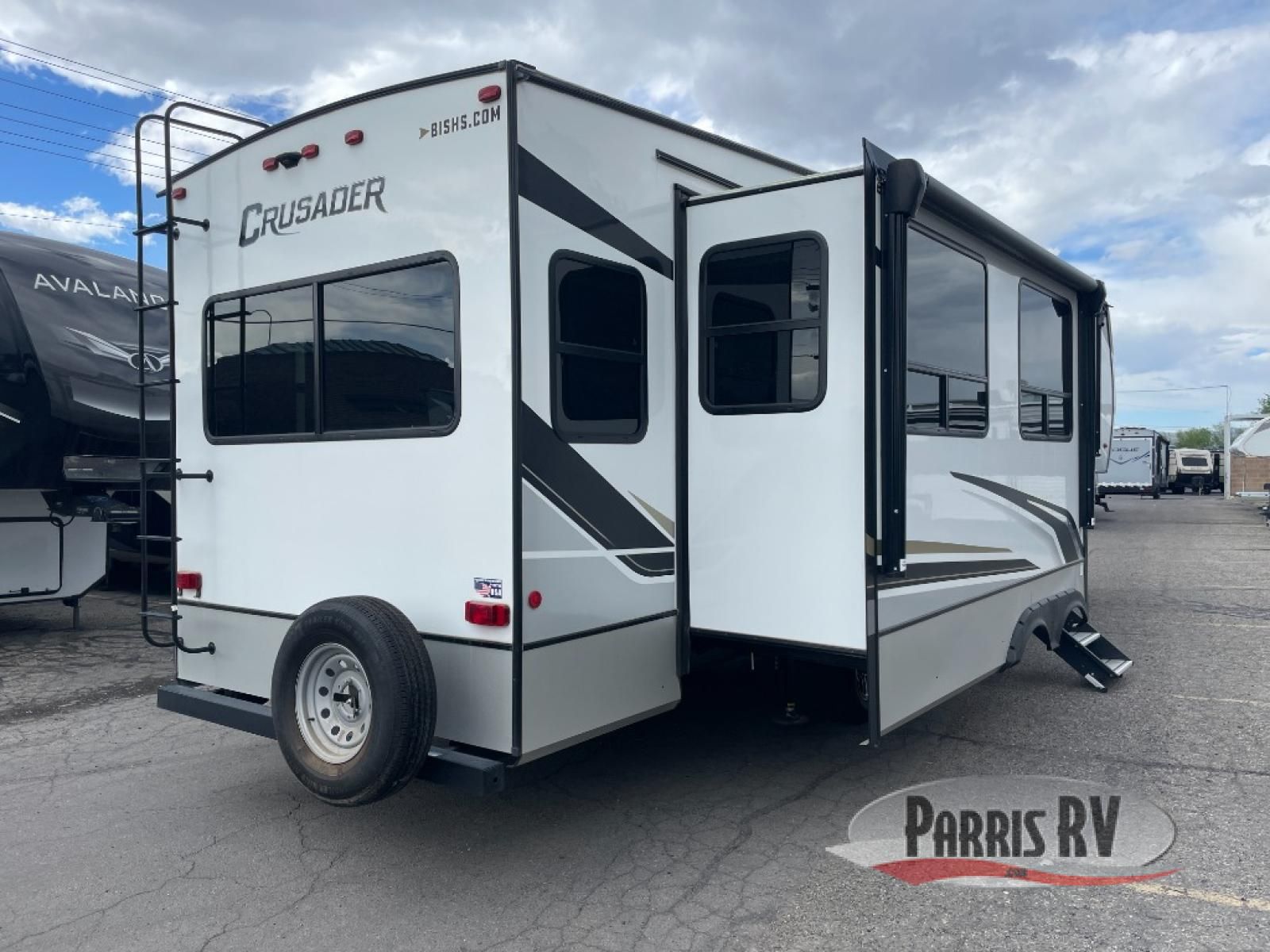 The Crusader fifth wheels by Prime Time RV are a step above the rest and it's not hard to see why. Each model has been constructed to last with its exclusive Eternabond construction, a one-piece TPO roof, and high gloss gel coat fiberglass exterior. The auto leveling system and the central docking center will have you set up to camp in no-time, and there is a convenient bottle opener and Doggy D-ring for your furry companions. You will fall in love with the interior that includes solid surface countertops, premium vinyl flooring, hardwood cabinet doors, and many more residential comforts. The Crusader also comes standard with a 15,000 BTU "Quiet Cool" A/C, a 35,000 BTU high capacity gas furnace, and the Extreme Thermal Package Plus, making your camping season year-around!
