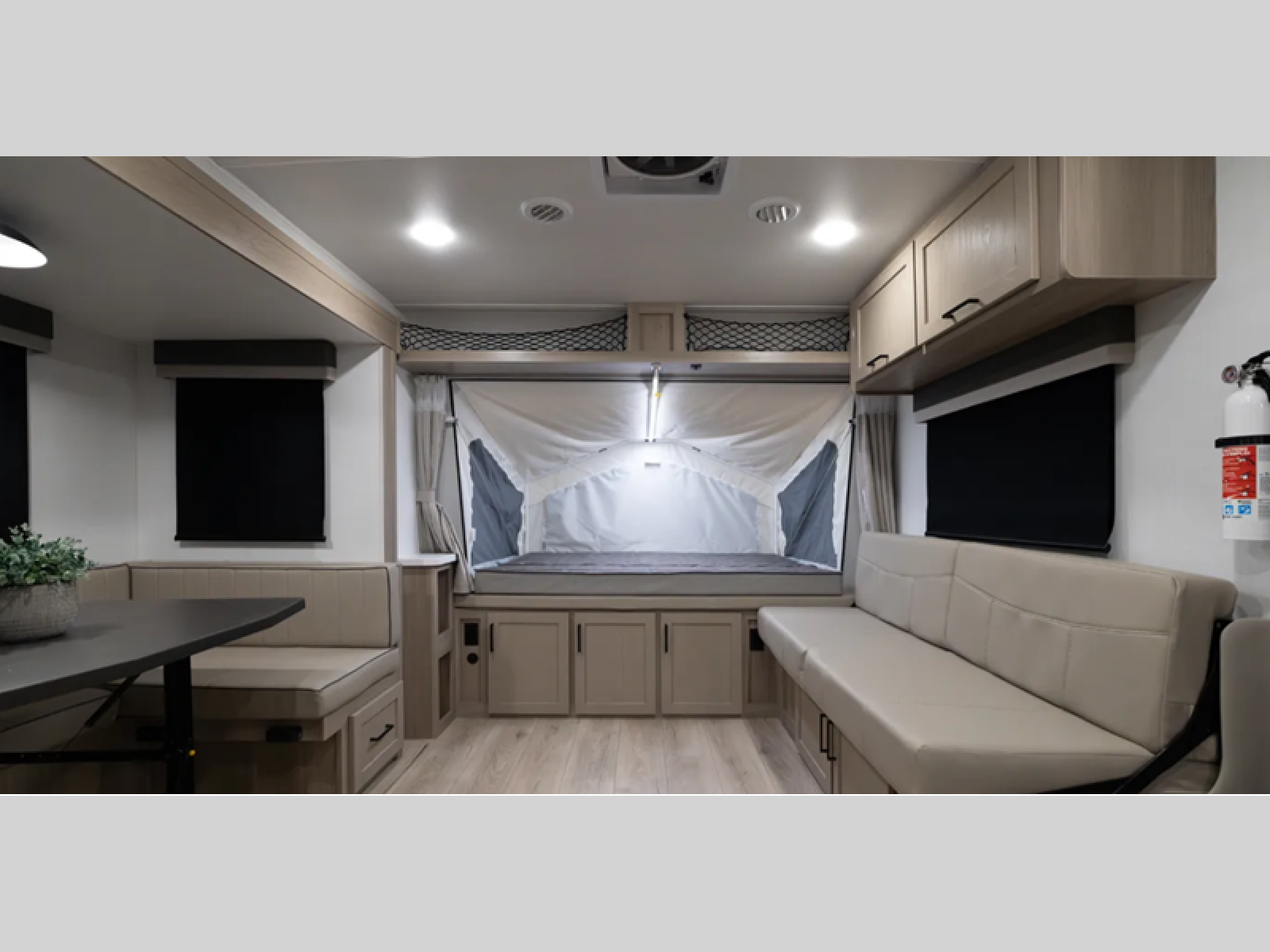With any Rockwood Roo expandable travel trailer by Forest River you will enjoy smooth towing thanks to the Dexter sprung axles and nitrogen-filled tires. The key-Alike locks provide easy access in and out of your trailer, and each model includes Winegard Air 360+ prepped for WiFi for all your connection needs. Each model is constructed with a fully laminated walkable roof, a 6-sided full-aluminum frame, and complete composite wall construction for added durability. You will enjoy many interior comforts, including residential look kitchen countertops, roller shades, hidden hinge cabinet doors, and more features found within the Near Nature Package!