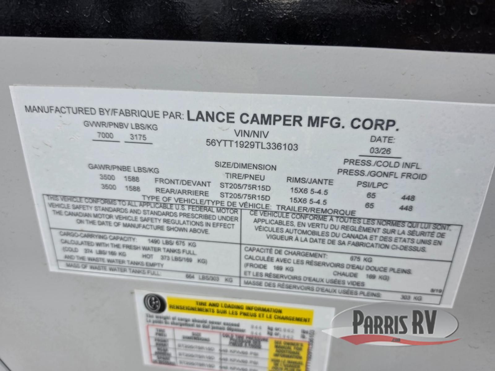 The line-up for the Lance travel trailers centers around three gorgeous interior décor options, a lengthy list of product enhancements, and simplification of ordering with many optional features being made standard. Some of the stand out features you'll want to take note of are the Keyed-Alike storage compartment doors for all of your camping essentials, the dual layer Azdel composite to prevent your unit from rotting, and the durable one-piece roof. The interior includes Euro overhead cabinetry designs, a pop-up electrical/charging tower, and a Shower Miser water system. You'll also find an innerspring mattress with a bedspread, a dual pane shower skylight, USB charging ports to keep your electronics at 100%, plus a JBL AM/FM stereo and JBL interior/exterior Bluetooth speakers to keep the party going!