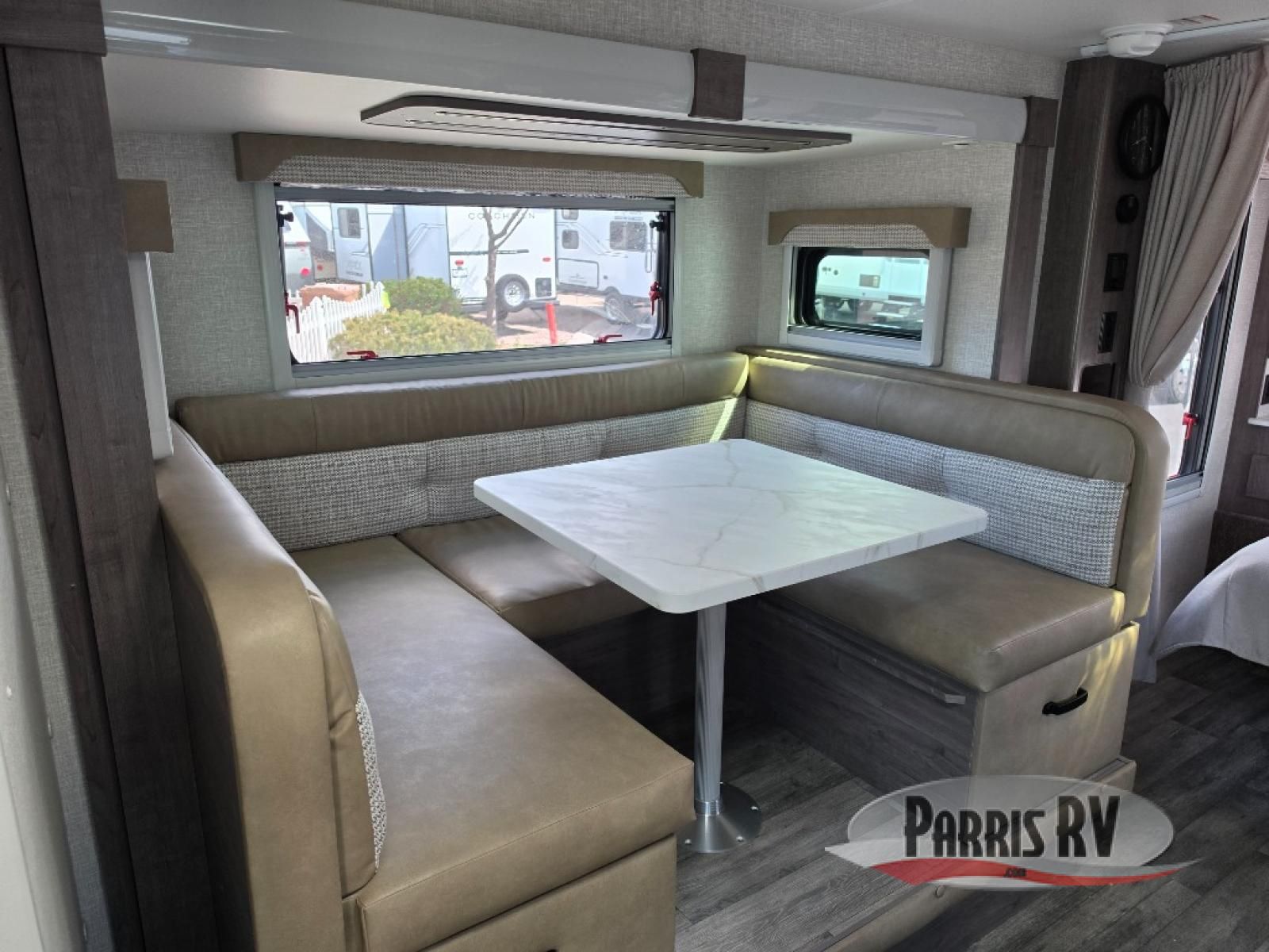 The main difference between this Lance travel trailer and model 1985 is that this unit offers you more storage space in the back in place of the full rear bath! The bathroom has a dual-pane skylight to let in natural sunlight as you get ready in the morning, and the deluxe queen pillowtop innerspring mattress with a bedspread and two LED reading lights is at the other end of the trailer. This bed can be sectioned off by drawing the privacy curtain, and the U-shaped dinette will provide sleeping accommodations for two more people. If you prefer, you can even change out the bed for the optional convertible sofa bed. Each person will benefit from a hot meal prepared in the kitchen on the stainless steel three-burner range!