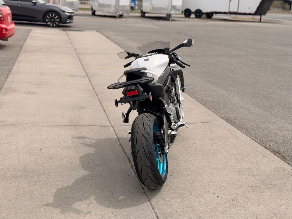 Behold 429 pounds of aluminum, electronics, and attitude—driven by a 675cc inline-triple unleashing 95 horsepower at 11,000 rpm, with torque that shows up early and builds smoothly. The adjustable KYB suspension reads ribbon after ribbon of curvy asphalt. Winglets and a steering damper keep the bike arrow-steady while the belly-mounted exhaust belts out its signature growl. A full-color 5-inch TFT dash streams the vitals—Bluetooth®, RideSync®, TPMS. Bosch® traction control and dual-channel ABS rev your confidence. Another lean is all it takes to understand: this bike doesn’t just meet your expectations—it resets them. And the price? Welcome to the affordable zone.