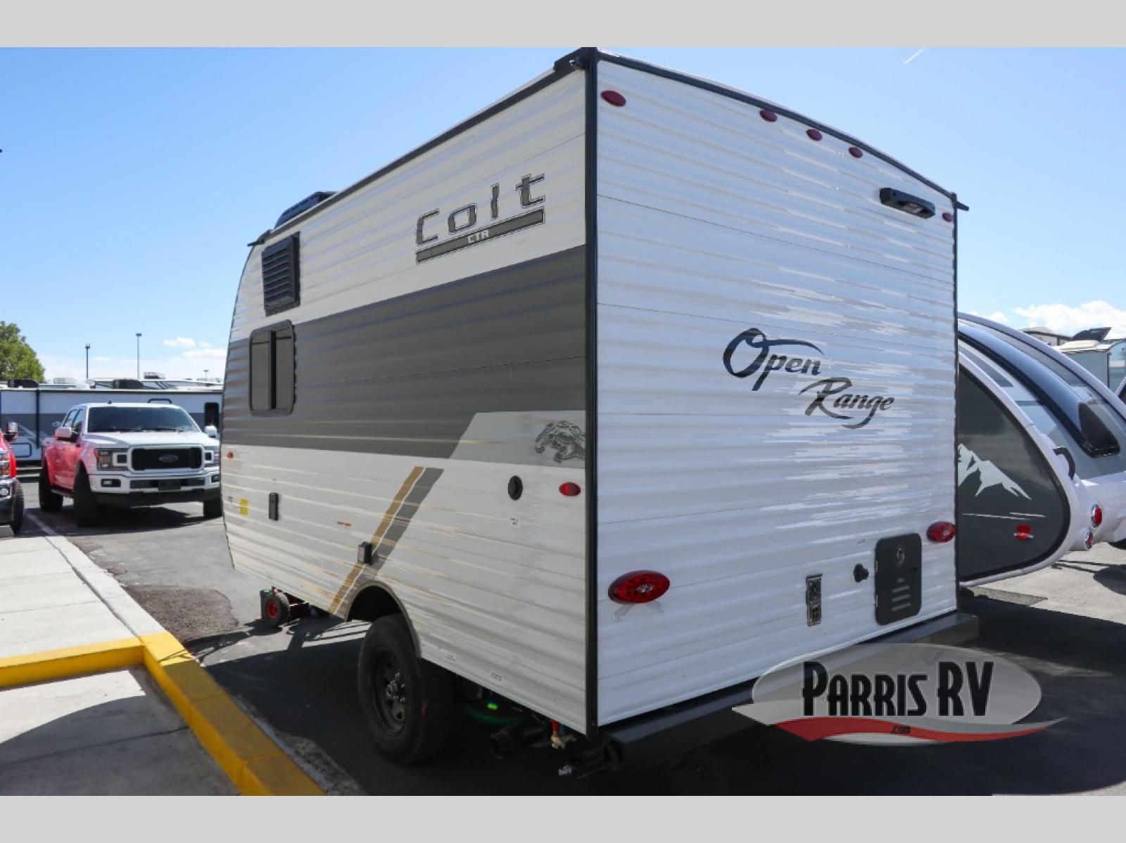 With any Colt travel trailer by Open Range RV, you can be sure you're getting a budget-friendly unit designed to fit your lifestyle! Each one is built to last with a PVC roofing membrane and built-in A-frame, plus there are nitrogen-filled radial tires and self-adjusting electric brakes for easy towing. You will appreciate the utilities that include 30-amp service, an A/C unit, and an on-demand tankless water heater. A few interior comforts include vinyl flooring throughout, solid hardwood cabinet doors, and residential grade kitchen countertops to make your space feel more like home. There are additional features available, depending on the edition you choose, along with available options to further customize your Colt travel trailer!