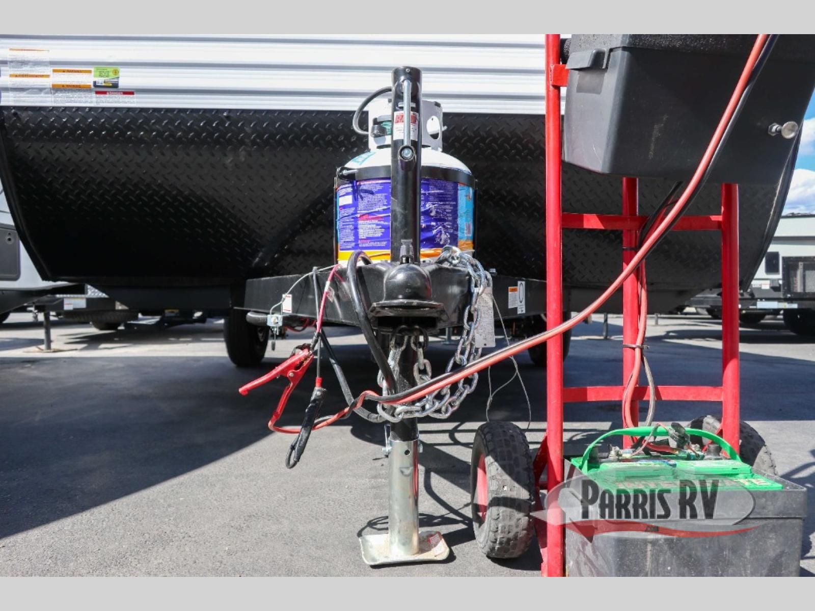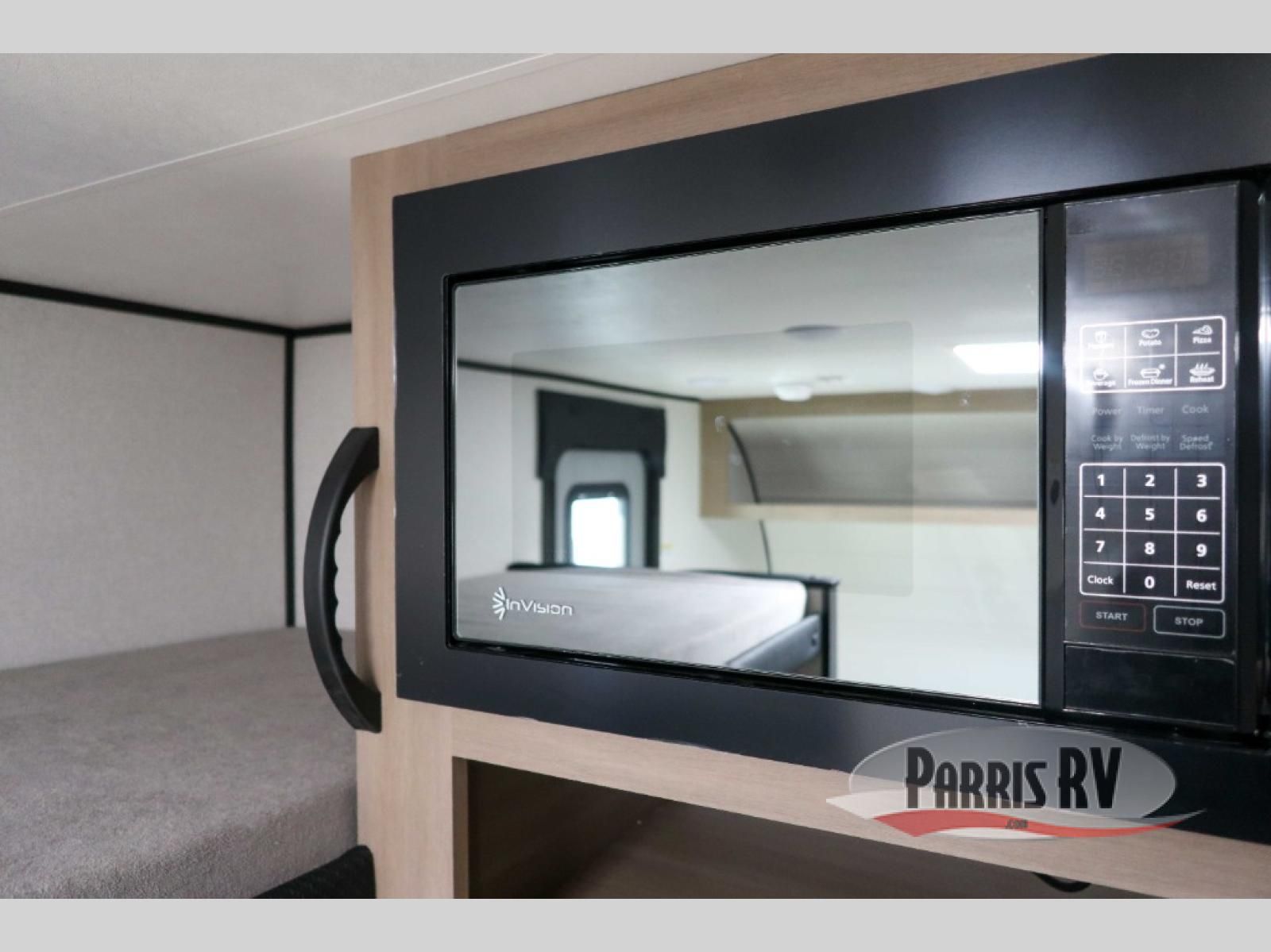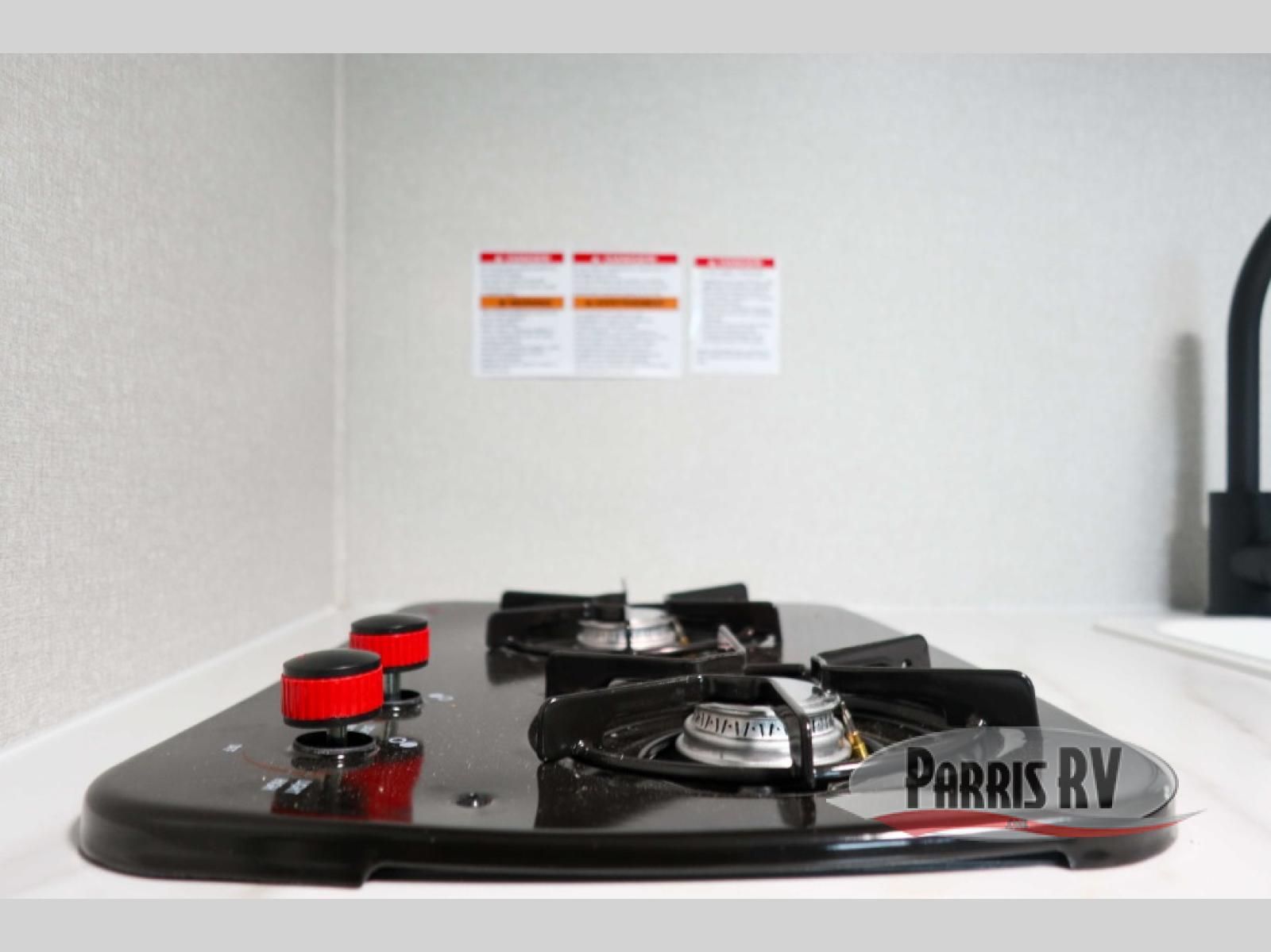 This lightweight travel trailer includes everything you need for comfortable camping trips at the lake. You can make your meals on the two-burner cooktop or in the microwave oven, and a 12V refrigerator will keep leftovers fresh. A front bed provides a great night's rest, and there are 30" x 73" bunk beds for your guests or little ones. And a private bath with a shower and toilet will let you easily freshen up without having to use the camp's facilities!