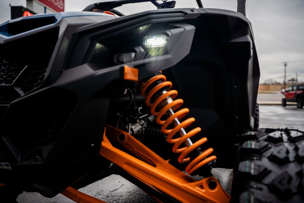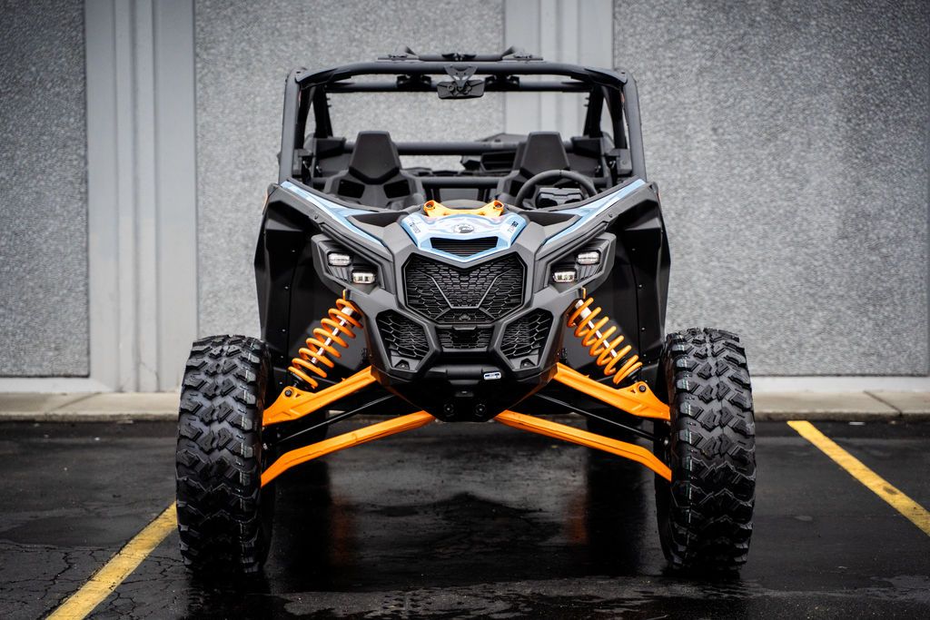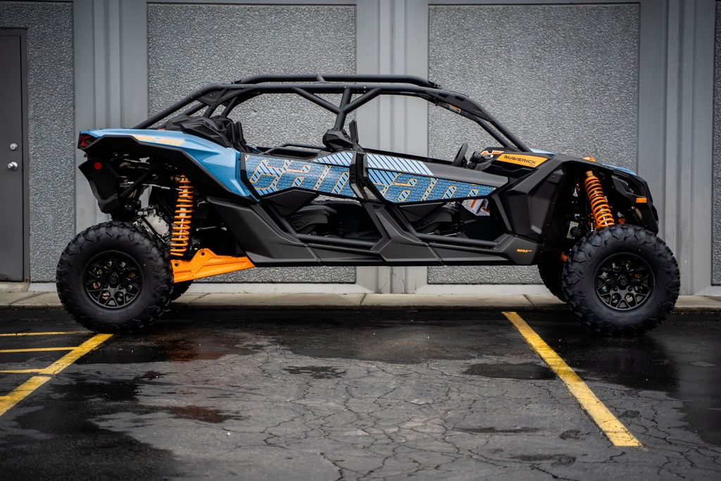 PRICE INCLUDES: Roof, Blinker Kit & Mirrors 2026 Can-Am® Maverick X3 MAX RS Turbo DScandi Blue & Orange Crush WIDE & WIDE OPEN. Invite 3 passengers to live the winning spirit of the vehicle which won the Dakar. And Baja. And Vegas to Reno. And…what are you waiting for? Features may include: Smart-Lok™* front differential SHOWA HPG piggyback 2.5 30 in. XPS Trac Force tires with 14 in. aluminum wheels 4.5 in. digital display with keypad THE ORIGINAL CHAMP A proven champion now more accessible than ever Unleash unbeatable off-road dominance with this revolutionary machine, now the most affordable in its category. Engineered with a lightweight chassis, experience lightning-fast agility and breathtaking speed that constantly shatters expectations. TURBOCHARGED POWER Engineered for excitement Built for adrenaline, its turbocharged engine provides unparalleled power, dominating any terrain for maximum thrills. CUSTOMIZABLE TO MAKE IT YOURS Explore limitless possibilities The Maverick X3 is the most customizable high-performance SxS on the market. Personalize your ride with an unmatched selection of LinQ accessories tailored to your needs! Connected Ride Everything you need at your fingertips Use the new offline group riding on the built-in GPS or more advanced navigation with the BRP GO! app. Download software updates over-the-air via Wi-Fi. Easily control accessories directly from the display. Innovative Suspension Setup Arched double A-Arm / Torsional Trailing-Arm X (TTX) With double A-Arm throughout the lineup, strength comes standard. All 72 in. wide models benefit from a Trophy-Truck inspired suspension design. Our X rc and X mr models also boast arched double A-arms for maximum ground clearance. Wheels & Tires High-performance wheels and tires Equipped to go the distance and get the most from the Maverick X3, anywhere. Each Maverick X3 package gets a unique setup, from staggered 30 in. ITP Cryptid† mud-ready tires, to the legendary 32 in. Maxxis Carnivore† tires with beadlock wheels. Strength Is Power Reinforced frame and A-arm protection Top engines, and customers, expect the strongest platforms that don’t back down. Here comes an ultra-efficient and lightweight chassis that's bulletproof to any riding style. We’re not talking gravel. Bound over boulders, trounce through dunes without a care in the rugged, craggy world. Comes through in the clutch Reliable clutch and CVT The Can-Am Maverick X3 features the innovative pDrive clutch with rollers for reduced wear and the latest pDrive primary and QRS-X CVT technology with high airflow for a drive like no other.