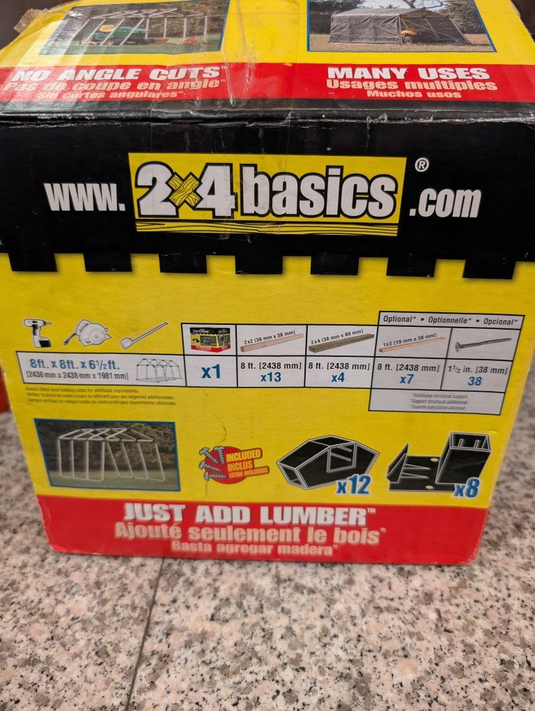 2x4 Basic shed kit. Just cut 2x2s to length and insert into brackets to create a shed frame for garden use, motorcycle/bike storage, or backyard storage.