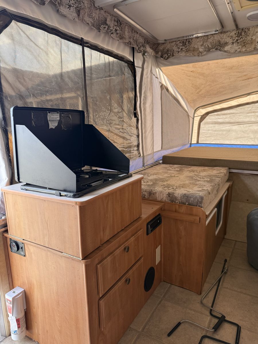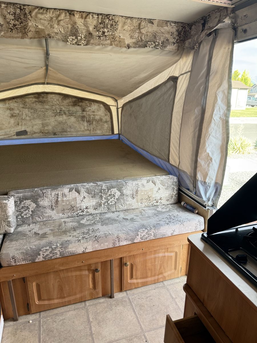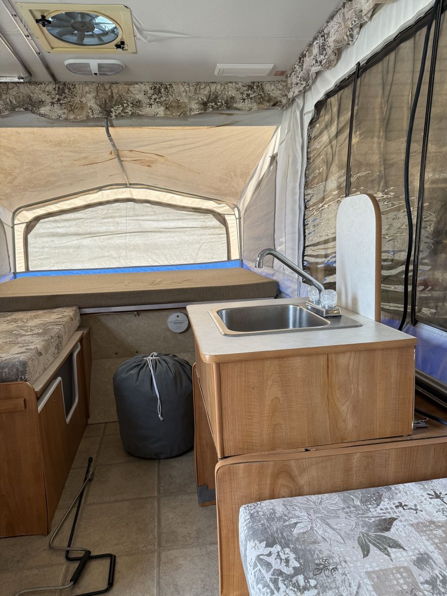 Roof needs to be resealed. Gasket on sink. And the toilet needs to be looked at. Working fine. Water heater,heater, stereo in and out new,winch for up and down, new propane regulators, air conditioner