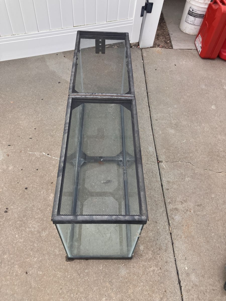 Large tank (48x13x21) Holds water for turtles if wanted or dry for snakes, lizards or whatever Top screen lids In great condition