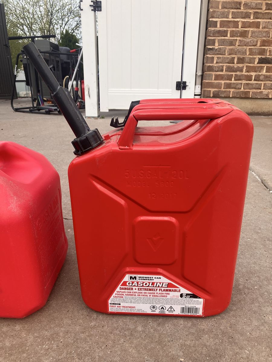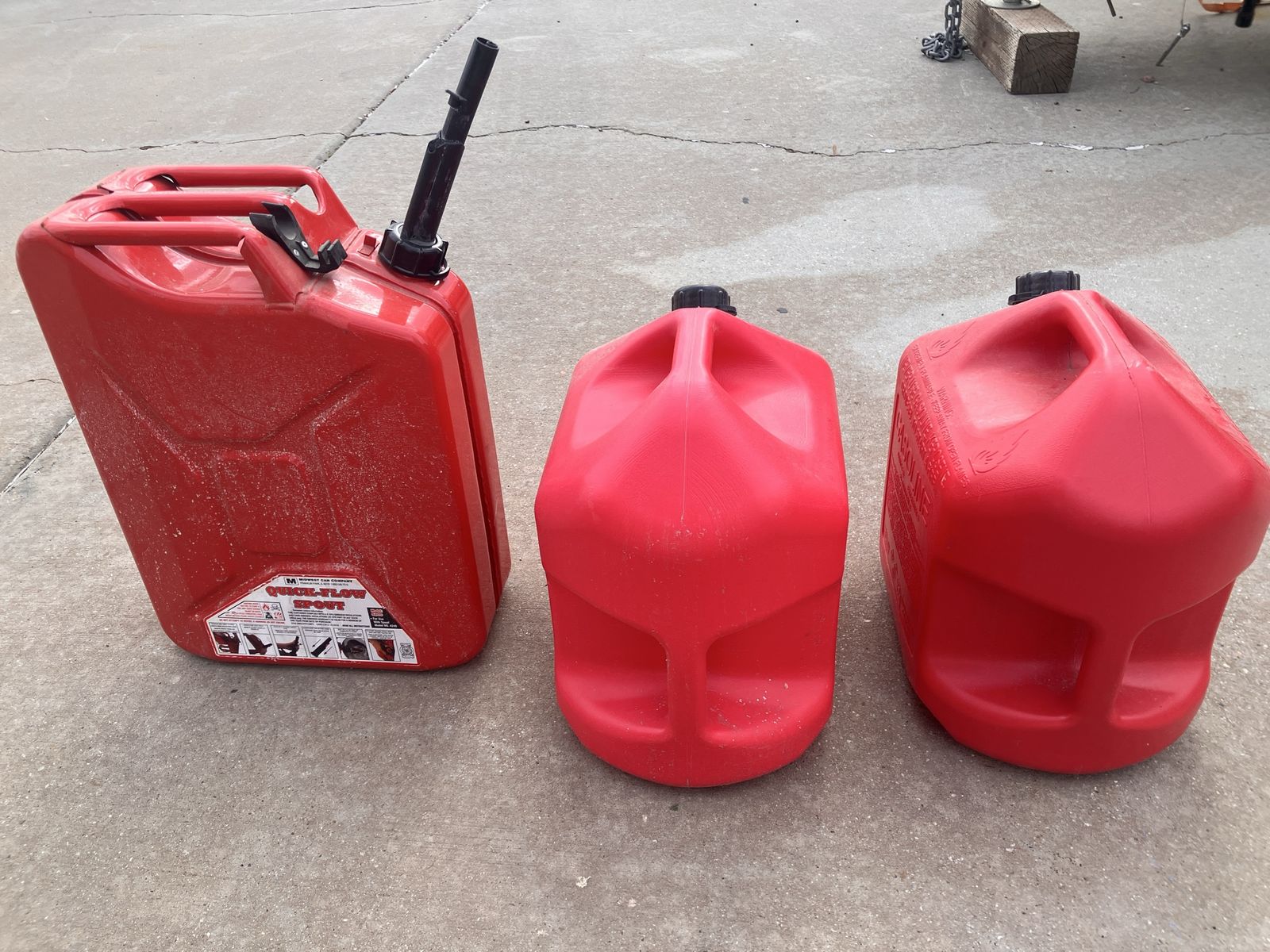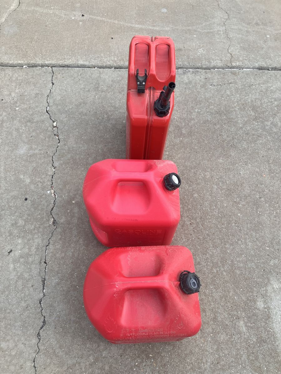 Two 5 gallon plastic cans and one 5 gallon metal can All in perfect working condition $15 each for the plastic and $40 for the metal one or all for $50