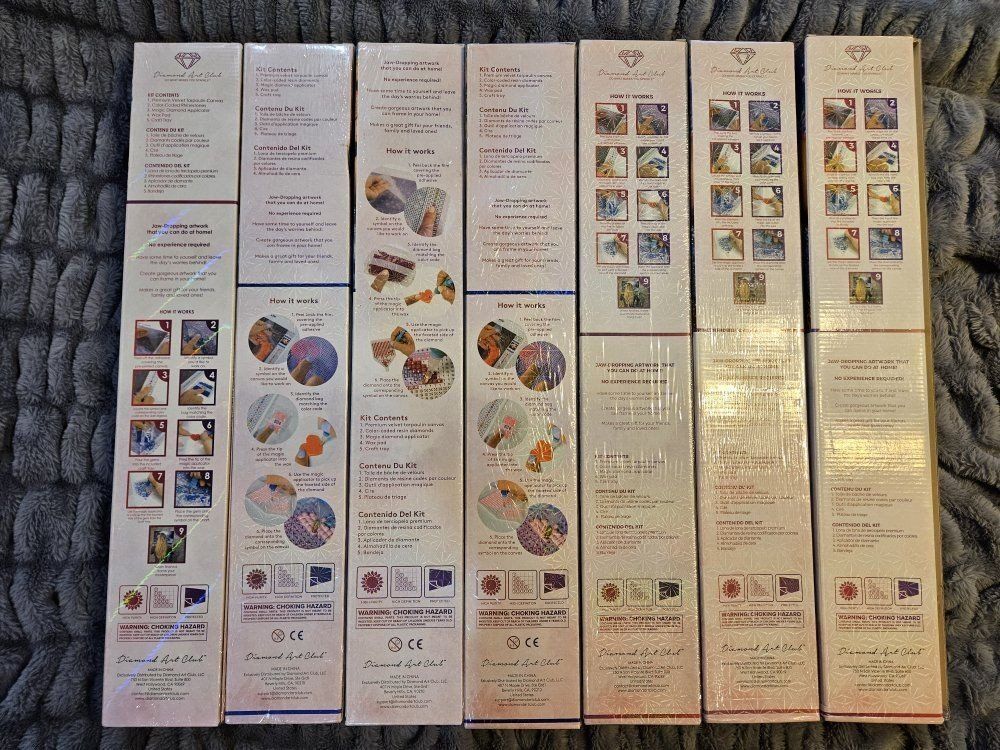VenmoDiamond Art Club Art Kits - New - $35 each What Child Is This (29" x 22") Psalm 8 (22" x 30") The Seer (22" x 31") Elusive (22" x 39") I miss You (22" x 30") Once Upon A Dark Night (22" x 32") Trixie (opened but complete) (19" x 26")