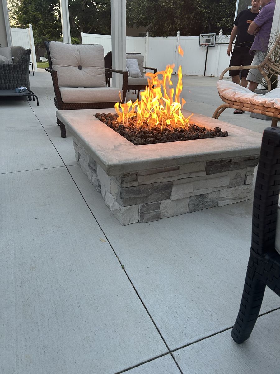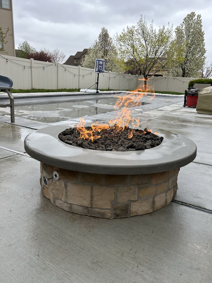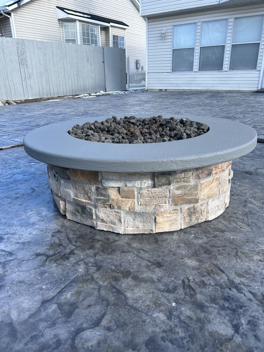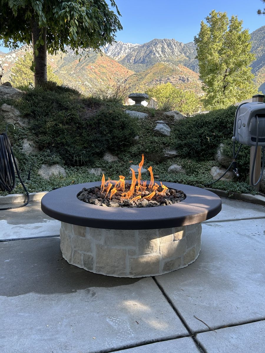 Upgrade your backyard with a beautiful, handcrafted fire pit designed for both natural gas and propane. Each piece features a durable concrete top and a solid stone base, built to handle the elements while adding a high-end look to your outdoor space.