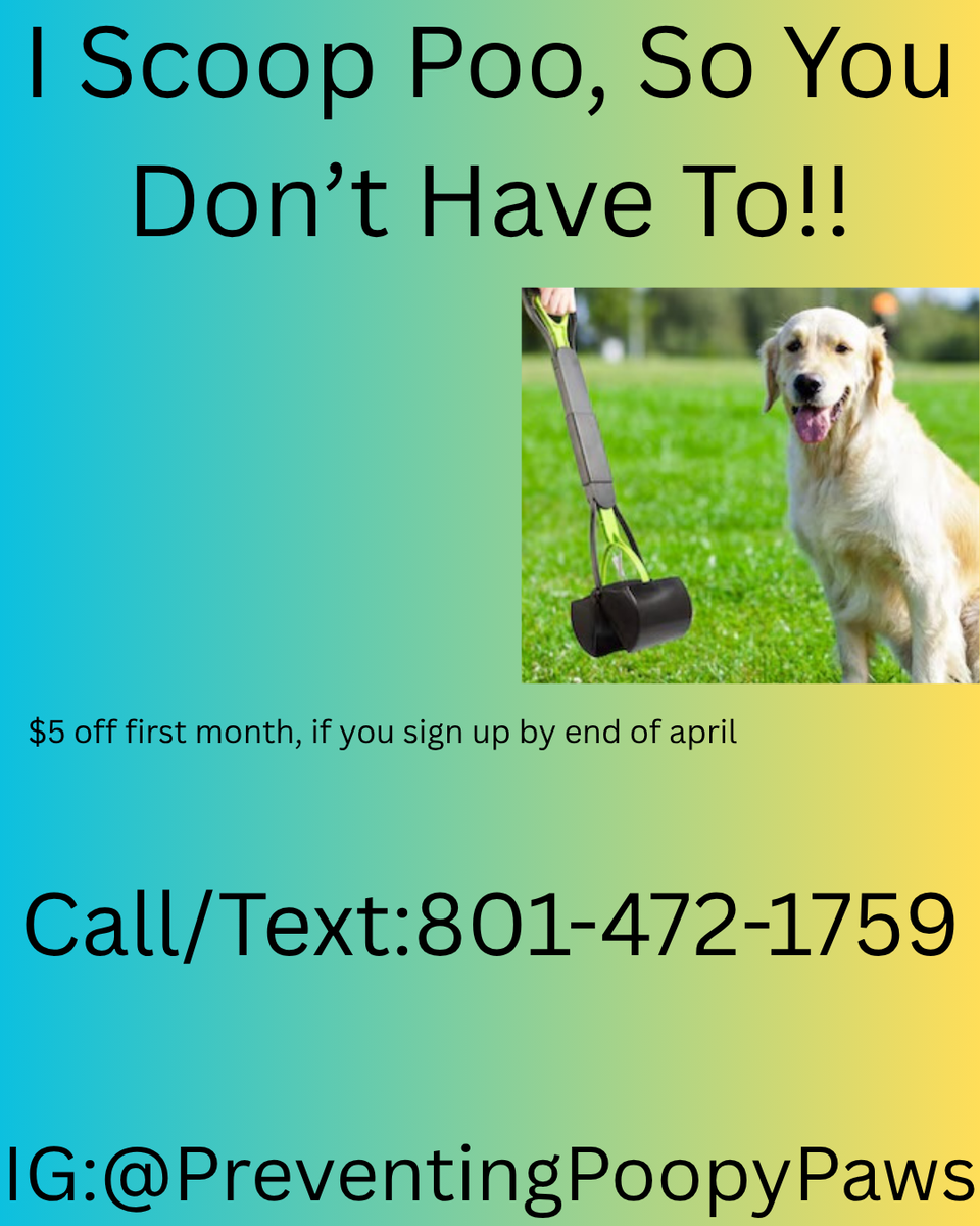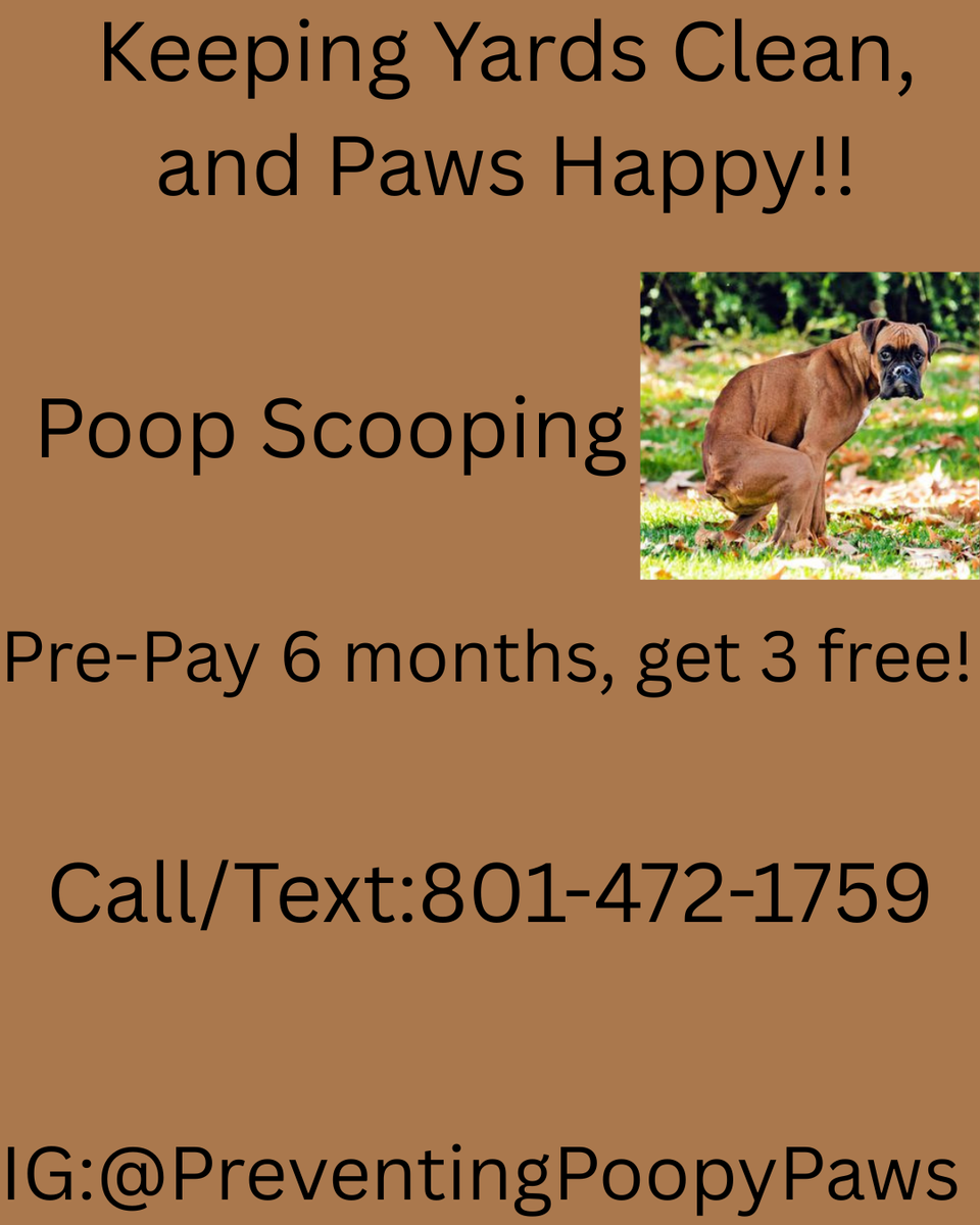 VenmoWeekly poop scooping for as little as 10/week. Reach out if interested. I offer great prices and deals.