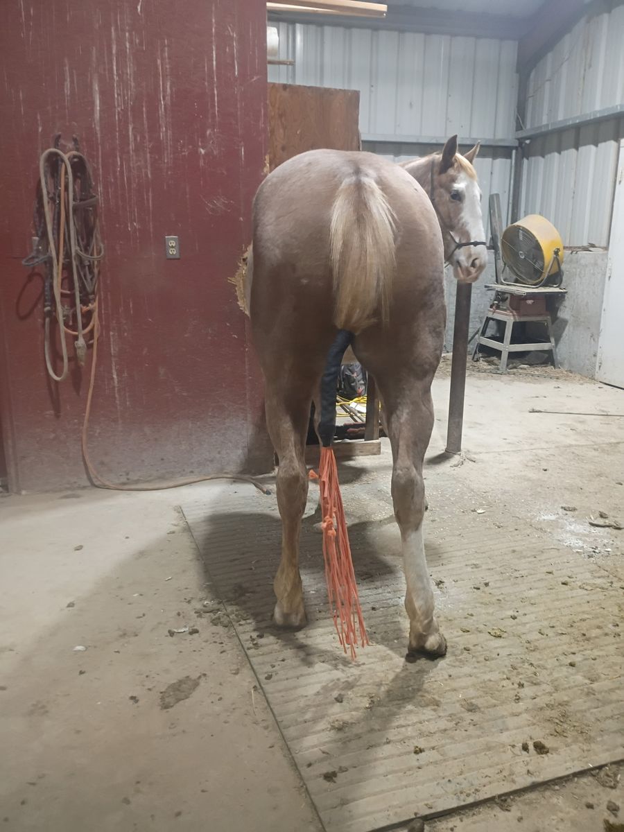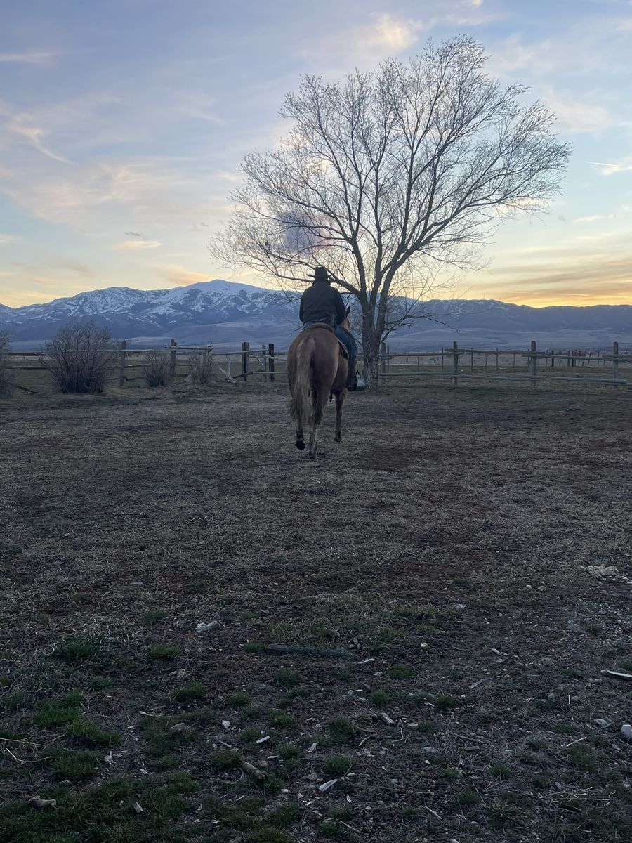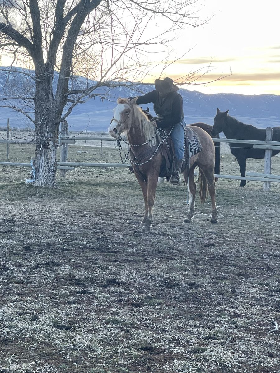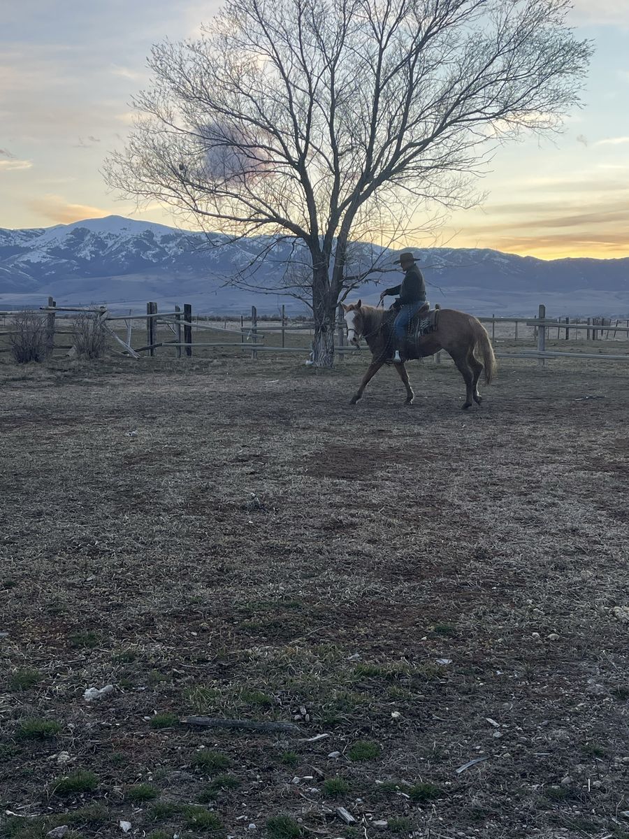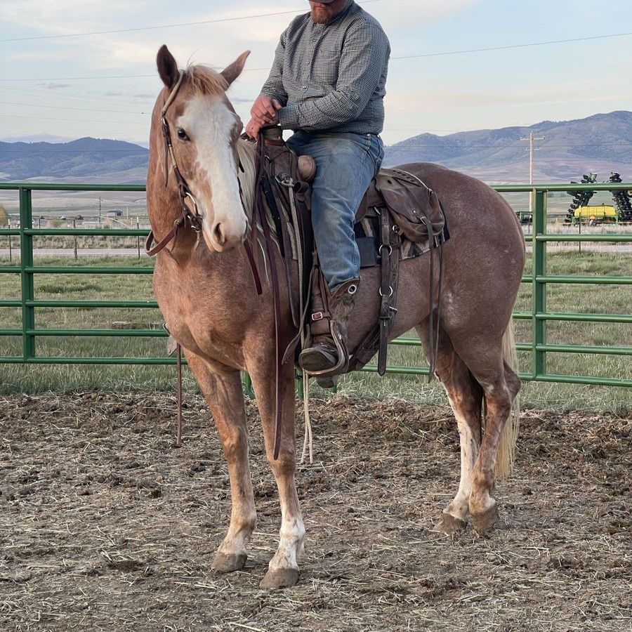 Reducing herd - Big coming 3-year-old grade strawberry roan mare. We got this filly as a weanling and started her last year with 60 days of ground work with 20/25 rides and was just recently rode on a smaller push moving cattle. She will stand tied ,load in a trailer and saddle well. She will pick up her feet and has been trimmed She is 15.3/ 16 hands tall. Can be hard to catch in a big pasture but will also come to grain. She is a started project horse that needs an experienced rider but with consistent training I do feel she’s going to make a good horse for someone. 3,200 call/text for any questions I can answer will continue to ride until sold . See Less