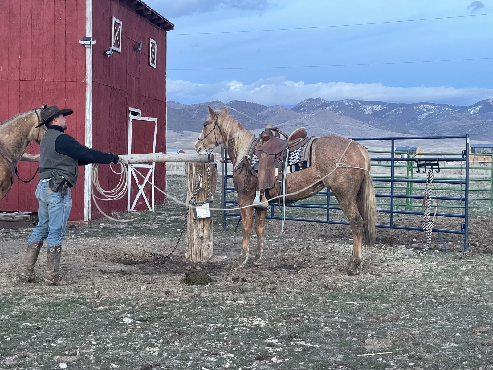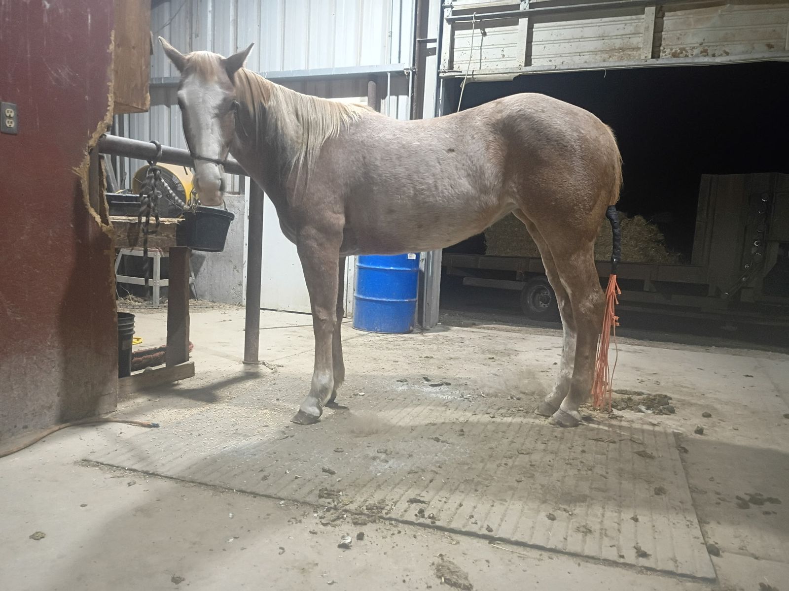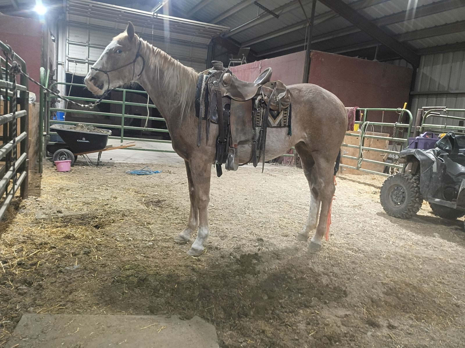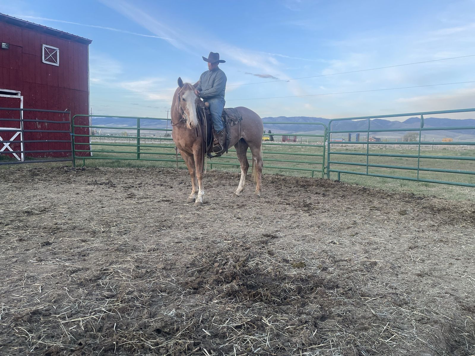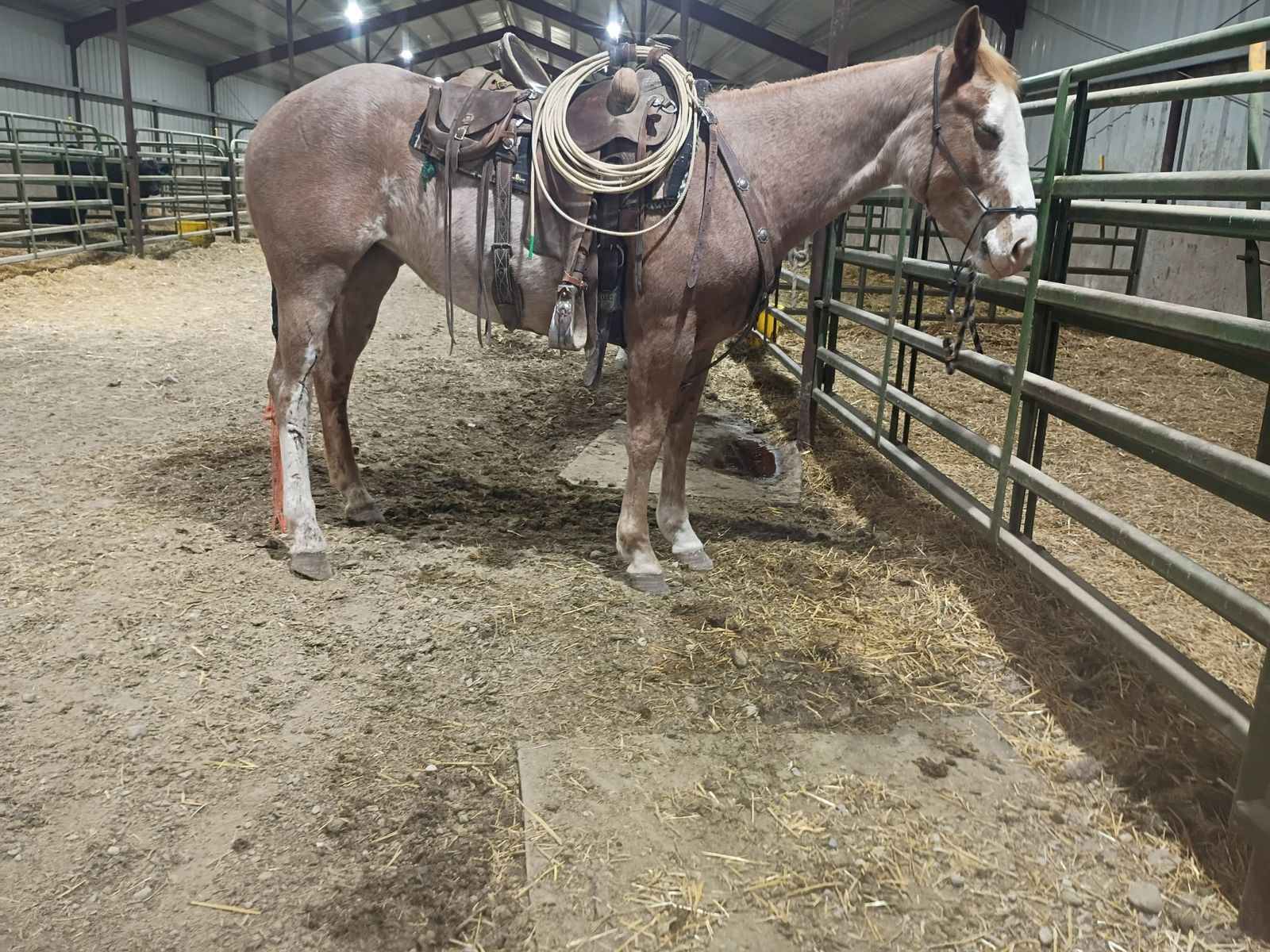 Reducing herd - Big coming 3-year-old grade strawberry roan mare. We got this filly as a weanling and started her last year with 60 days of ground work with 20/25 rides and was just recently rode on a smaller push moving cattle. She will stand tied ,load in a trailer and saddle well. She will pick up her feet and has been trimmed She is 15.3/ 16 hands tall. Can be hard to catch in a big pasture but will also come to grain. She is a started project horse that needs an experienced rider but with consistent training I do feel she’s going to make a good horse for someone. 3,200 call/text for any questions I can answer will continue to ride until sold . See Less