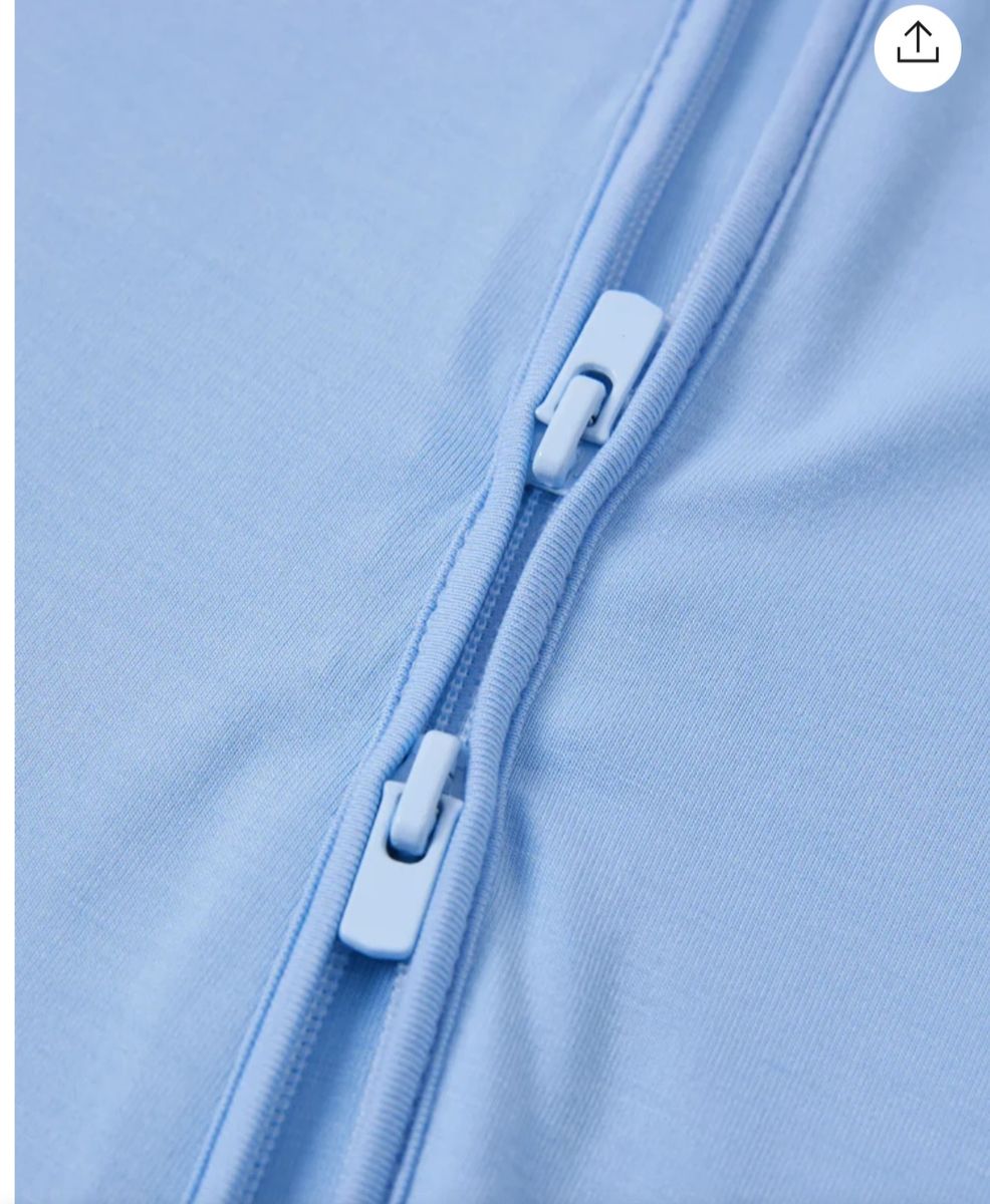 1 solid light blue romper and 1 blue with sunshine, clouds and moon romper.