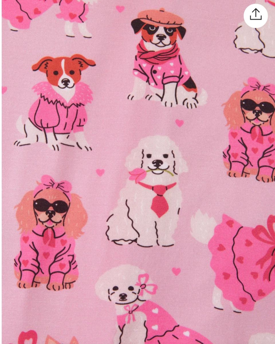 1 solid pink romper and 1 pink romper with doggies.