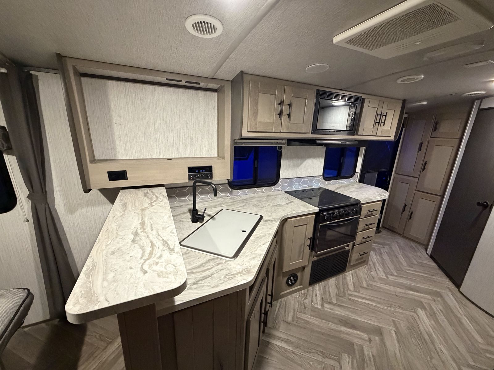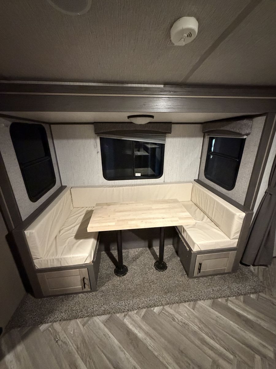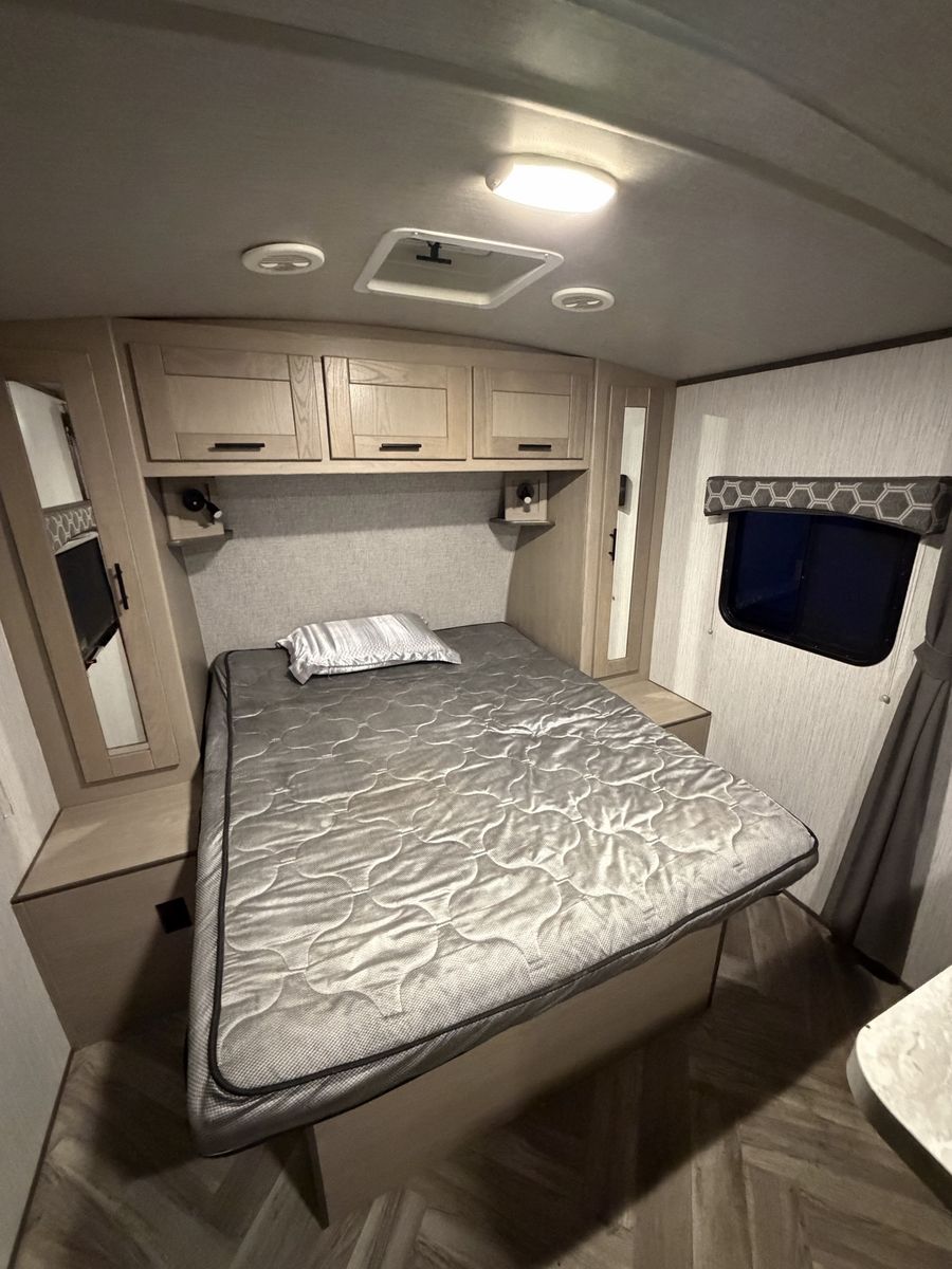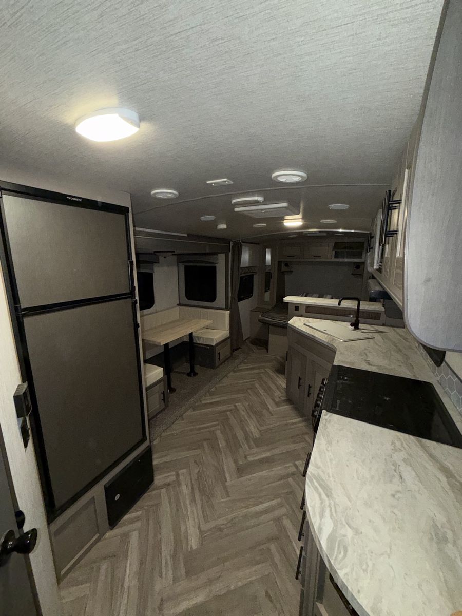 ZelleAwesome trailer, everything works as it should. It has one slide, power leveling jacks on the front and rear. Powered tongue jack. Nice size storage compartment in the front. Powered awning that gives great protection from the sun and rain. It pulls easy and brakes work. Camping season is coming! Come check it out!