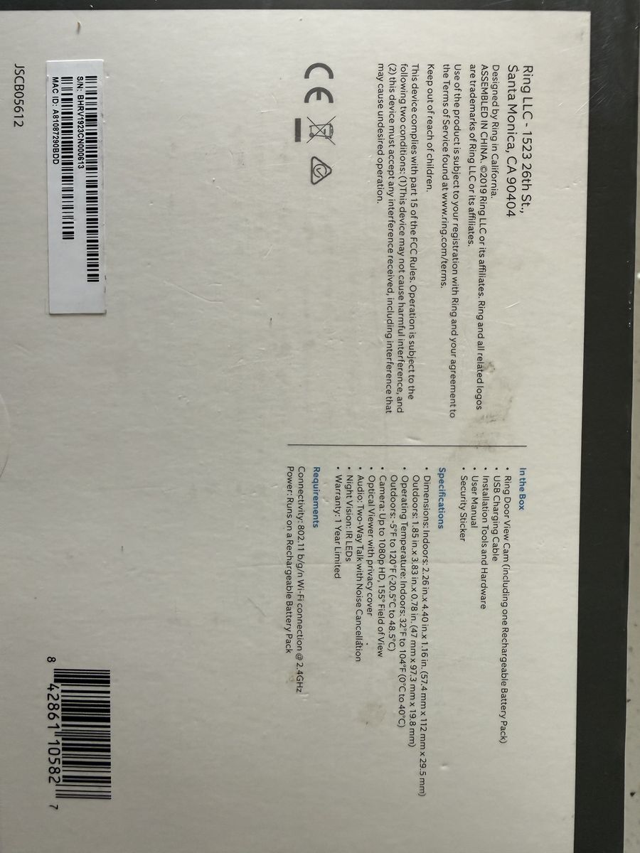 VenmoThis has never been installed. It is a motion activated doorbell and camera that replaces the peephole on your door. HD Video, Two-Way Talking, Impact Sensor, rechargeable battery pack and works with Alexa and an app and sends out notifications.