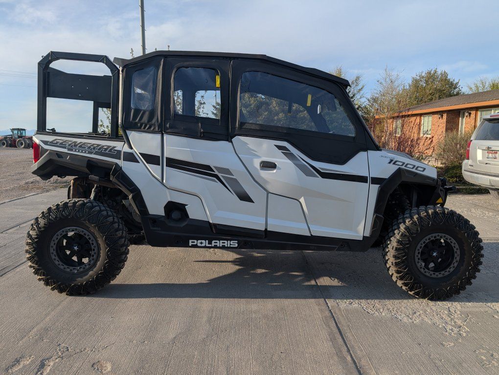 -Polaris General- • 2400 miles • Has aftermarket inferno heater • Extra large bump seat in the back. • Polaris OEM Full canvas enclosure • Upgraded SLP clutch to handle the bigger tires and suspension. • Upgraded QS3 fox suspension w/zbros front A-arms for better clearance • LED light pods • Sound Deadening material installed for a quieter ride (pics included) • 2 inch level kit done by Dirt Slayers in Idaho Falls. • Aftermarket wheels and tires 32x10x14 • EXTENDED WARRANTY THAT IS TRANSFERABLE. (1.5 years remaining)