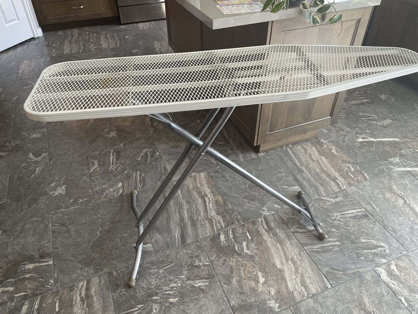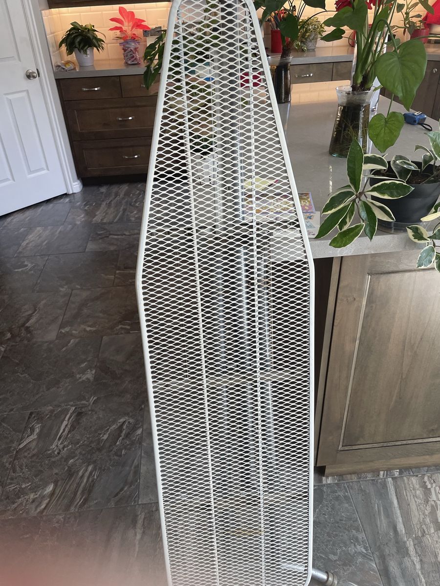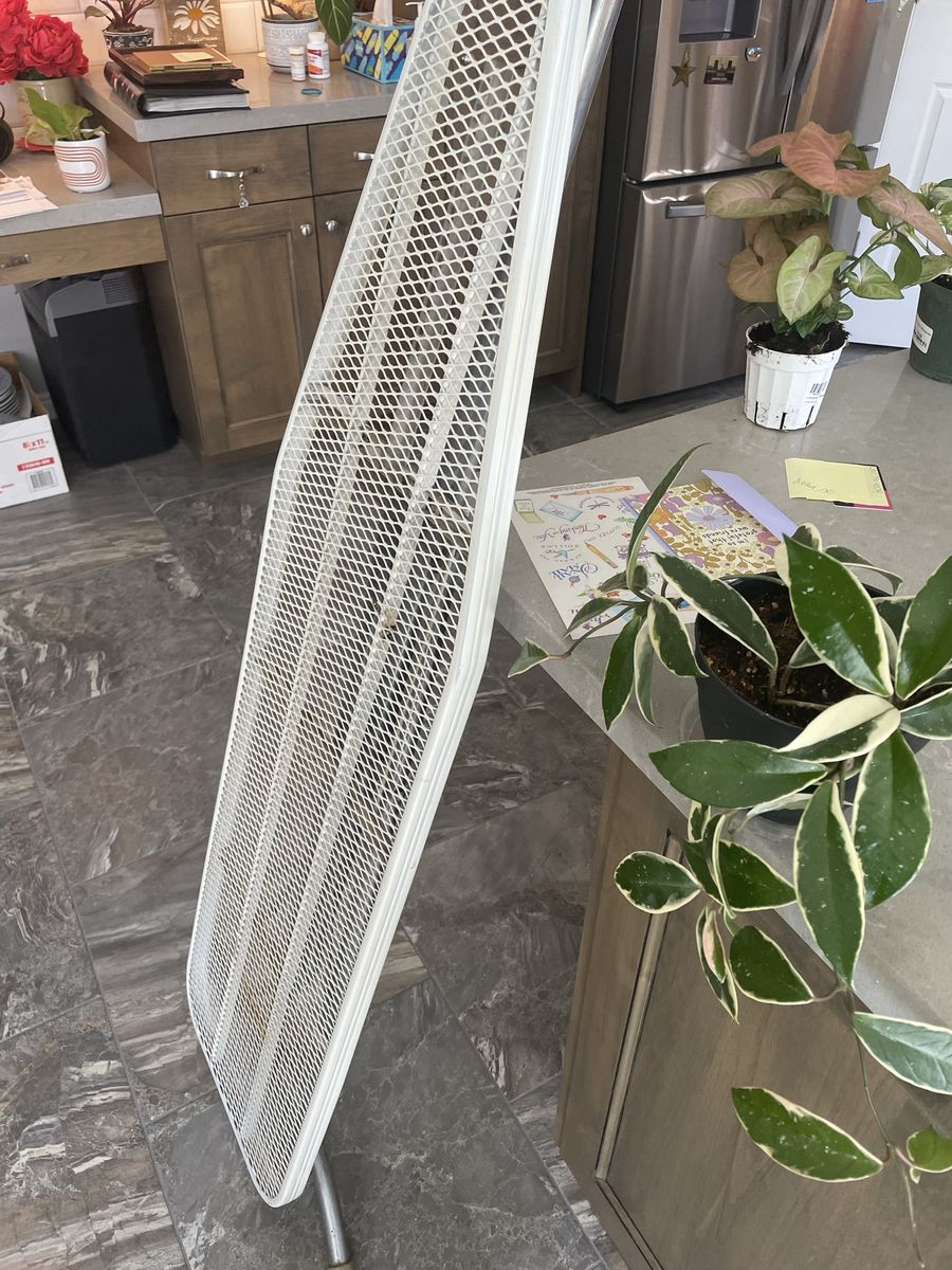 VenmoVintage ironing board. Made from steel and its a little heavy but steady. Folds up flat. Portable.