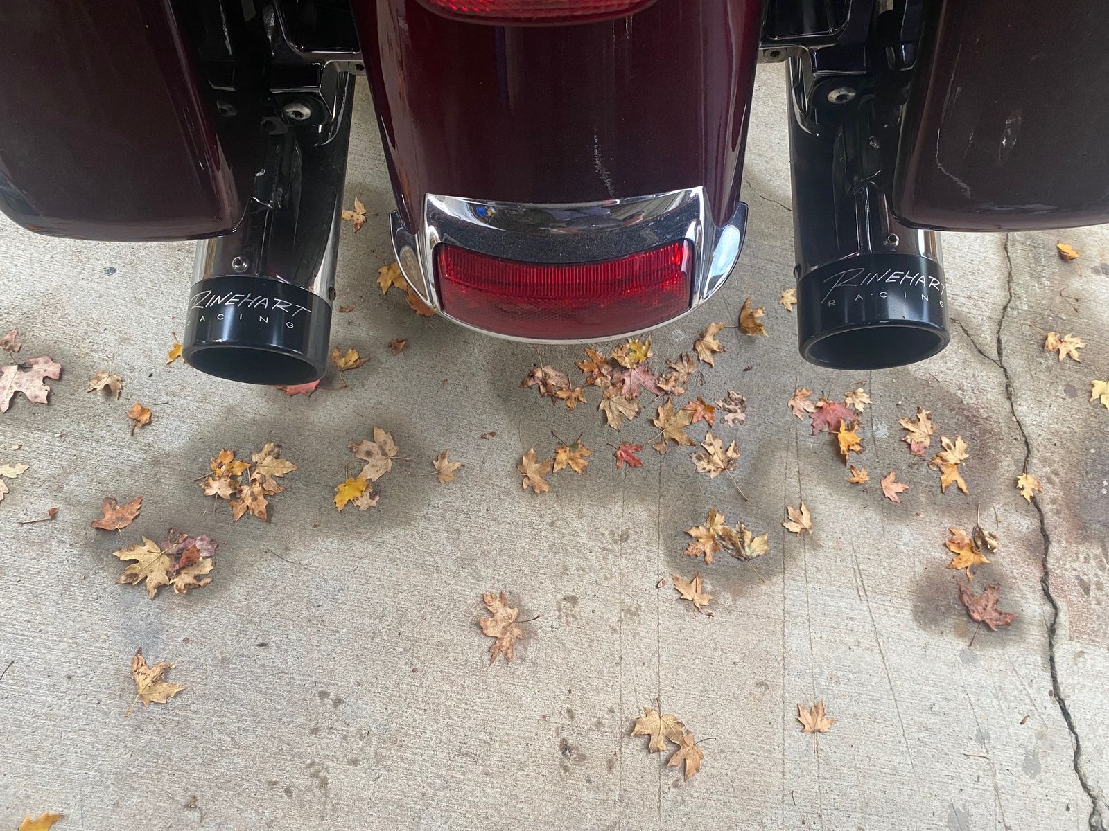 This Mysterious Red Sunglo/Blackened Cayenne Sunglo painted ride has the Twin-CooledTM High Output Twin Cam 103TM engine w/liquid cooled heads with the added power of Rinehart Racing 2-into-2 chrome headers w/4” Slimline Duals, Chrome w/Black ends and a Vance & Hines Fuelpak FP3 tuner to take advantage of the increased power available from the tuned dual RR exhaust .