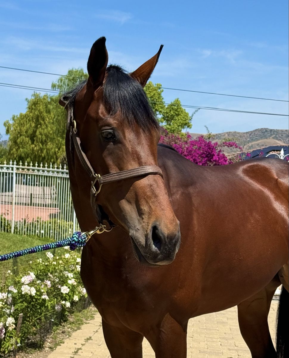 Meet “Chili”- the absolute coolest of cool kids! He’s a 3 yro colt that sticks 15.3, is unraced and sound- just had no desire to be a racehorse(the best kind). Fantastic brain. The asst trainer at the track LOVED this colt. Would make an awesome ranch riding or polo prospect.
