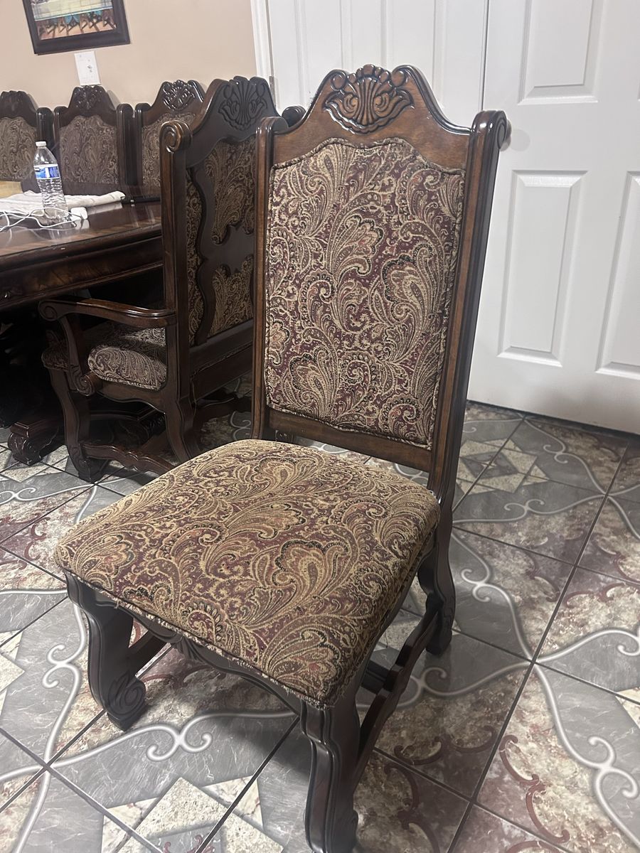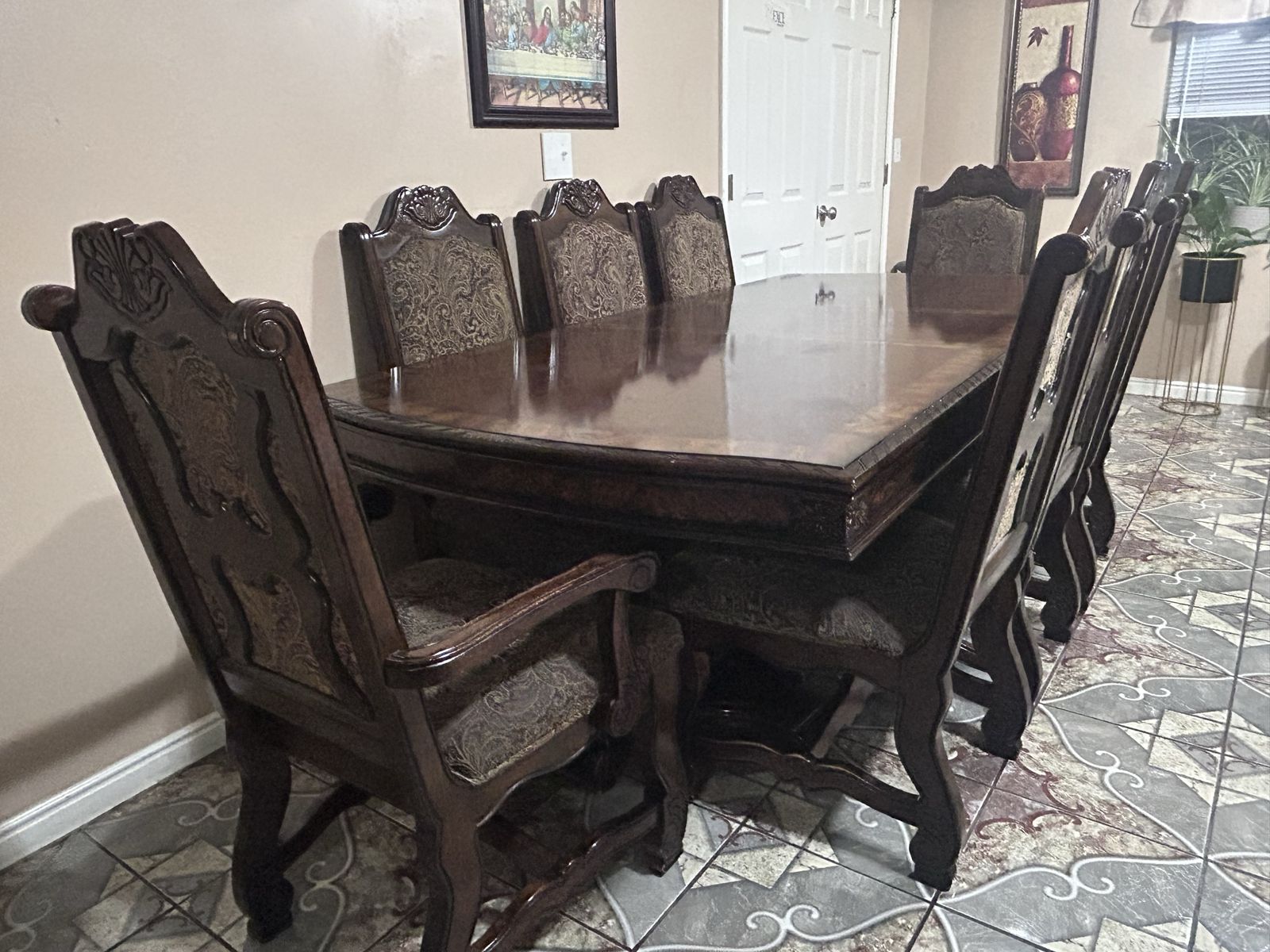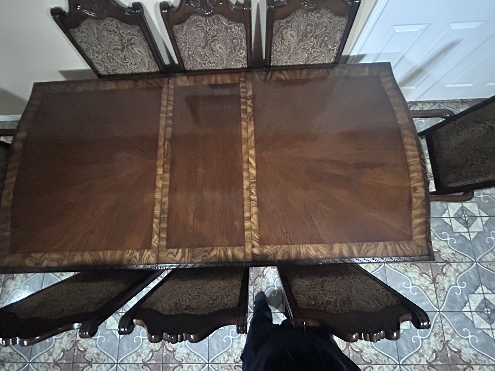 Venmosolid wood dining table set in excellent condition. Very sturdy and heavy , not cheap furniture.