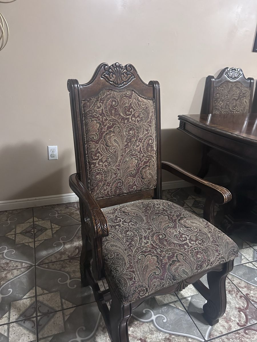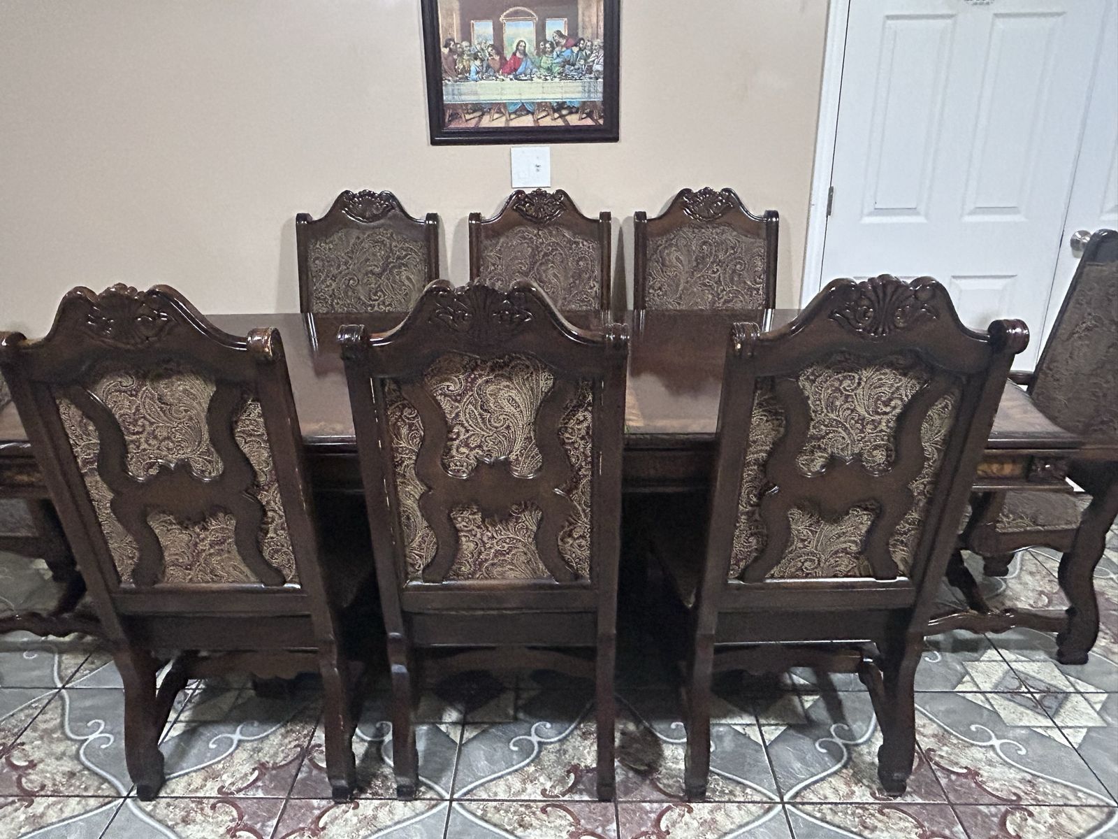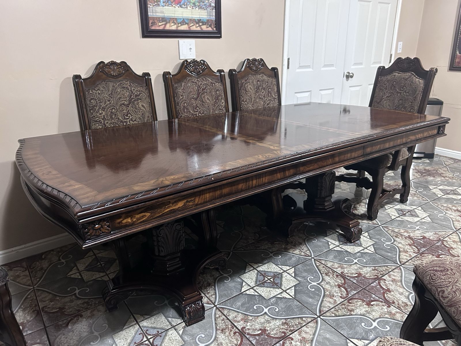 Venmosolid wood dining table set in excellent condition. Very sturdy and heavy , not cheap furniture.