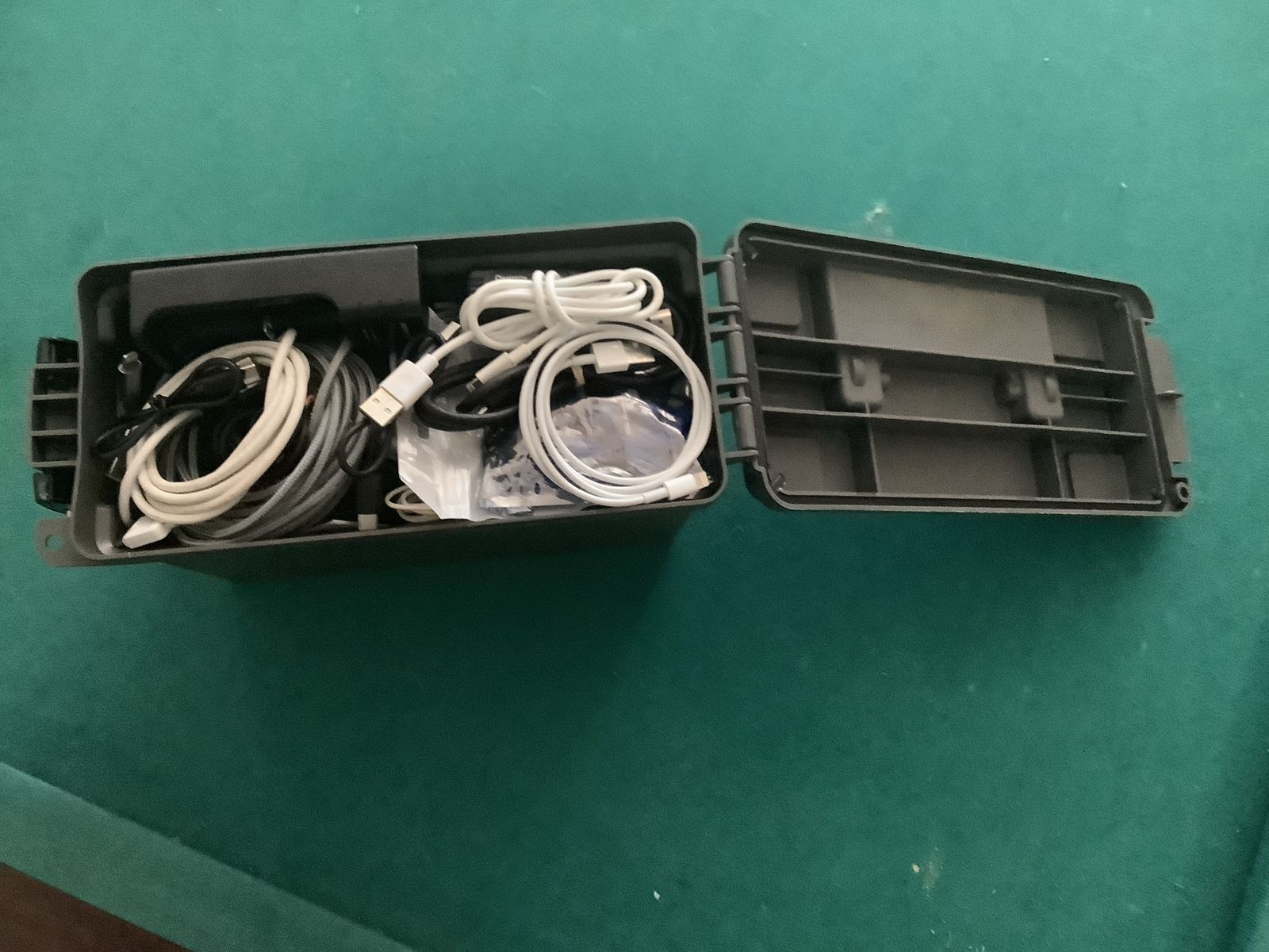 Watertight gray store anything that fits box. This one’s filled w/cables digital smart watches, chargers and USB C cables and more! Don’t agree w/price… make me a good faith offer.